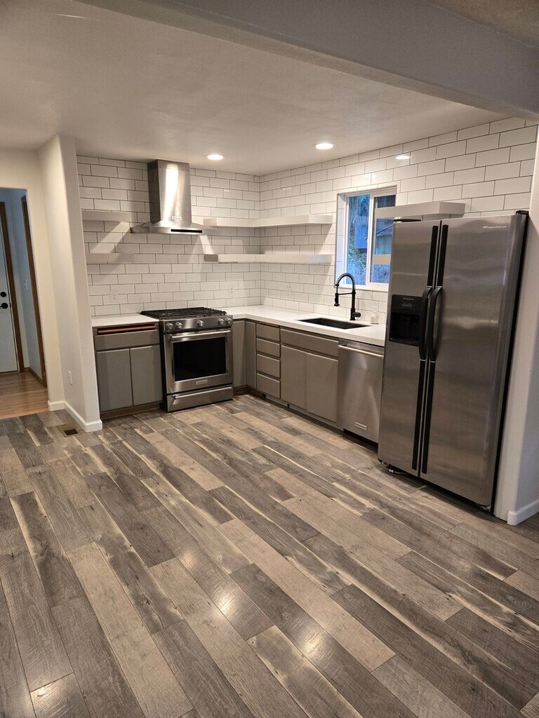 Welcome to this spacious one-level home located in the charming town of Boring, OR. This property boasts three bedrooms, two bathrooms, and an additional 9 x 9 office space, perfect for those who work from home. The updated kitchen, complete with stainless steel appliances and floating shelves, offers a modern touch to this cozy home. The hardwood look flooring throughout adds a touch of elegance and is easy to maintain. The large fenced backyard is perfect for outdoor activities and the two large sheds provide ample storage space. The attached two-car garage is not just for parking, it also features a workspace and plenty of shelving for storage. A separate laundry room with washer and dryer Hook-ups add to the convenience of this home. The house is heated with forced air gas heat. Please note, there is no central AC. This property is pet-friendly, welcoming one dog that is two years or older, with breed restrictions and an additional deposit. Experience the comfort and convenience of this large lot home with tons of storage! * Drive by first, then call or email to schedule a viewing @ #. Apply anytime @ * No smoking of any kind allowed inside and outside within 30 feet of any building including sheds.