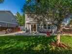 Two-story residence tells a story of thoughtful updates, intentional living, and outdoor spaces designed for connection. Framed by a water-wise clover lawn and accented with brick, the home’s welcoming curb appeal sets the tone for what’s inside. The main living area unfolds with natural light, wood-look flooring, and a functional layout designed for everyday ease. The refreshed eat-in kitchen pairs freshly painted cabinets with stainless steel appliances, including a brand-new microwave and newer dishwasher. A two-tier peninsula offers added prep space, while recessed lighting creates a clean, modern ambiance. Upstairs, 3 well-proportioned bedrooms and a flexible loft provide room to grow and gather. All bathrooms have been uniformly updated, including the private primary suite featuring a tiled step-in shower and a generous walk-in closet. Smart home features include voice-activated, WiFi-enabled LED lighting throughout, a whole-home generator backup inlet, and a 4.785 kW SunPower solar system that brings efficiency and peace of mind. Additional upgrades include a brand-new water heater, newer washer and dryer, cleaned air ducts, freshly serviced carpets, and a widened driveway with sturdy pavers. The backyard becomes an extension of the living space, centered around a generous wrap-around patio that curves seamlessly toward the front yard—offering multiple zones for entertaining, relaxing, or gathering around a future firepit, hot tub, or gazebo. A detached shed adds extra storage, and the oversized garage includes built-in shelving for easy organization. Located just moments from multiple parks, Springvale’s disc golf course, Trail Winds Open Space, and the Rec Center, with quick access to schools, dining, shopping, and commuter routes, this home offers a seamless blend of comfort, utility, and lifestyle.