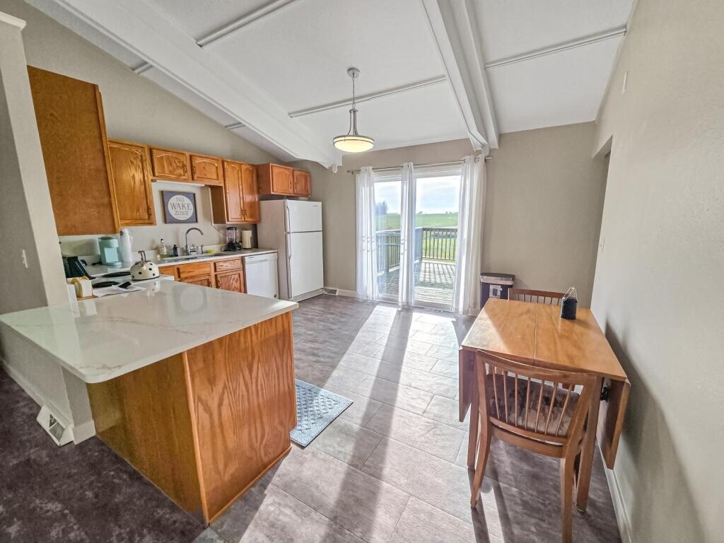 Welcome to the Loons Nest. This ranch home offers three bedrooms and two bathrooms. The primary bedroom provides and on-suite bath. The on-suite bath offers a walk-in shower and plenty of natural lights. The second bathroom provides a shower/tub combination. The main level of the home is fully furnished. The lower level has open storage, washer and dryer. The primary bedroom provides a king sized bed, the second bedroom provides a king bed, and the third bedroom provides a queen bed. The total sleep count is 6, The kitchen has all the comforts of home and sits four in the dining space. The location is just two minutes from uptown Spirit Lake and just over a mile to the hospital in Spirit Lake. The tranquil setting is perfect to relax after a long day at work. Utilities are included and can be rented by the week.