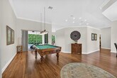 An incredible opportunity to escape the cold winter months and stay in a private, updated single-family home featuring a beautiful heated pool, covered patio area, and fully fenced yard (pets welcome). The home boasts tall 12-foot ceilings, wood-like flooring (no carpet), an updated kitchen with stainless steel appliances and granite countertops, a pantry, a split floor plan, and a billiards table. Lawn care and pool maintenance are included in the rent. All bathrooms are nicely updated, including a formal powder room. The master bedroom offers a soaking tub, walk-in shower, and large walk-in closet. There is a spacious driveway and a two-car garage. This property is incredibly well-maintained and in an excellent location. Lease length is flexible.