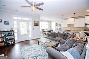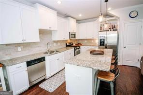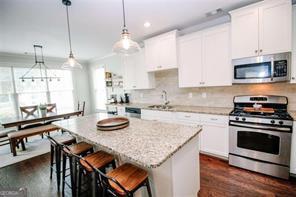 VACANT AND MOVE-IN READY! Welcome to this well-maintained Craftsman-style home featuring an open-concept main floor with hardwood flooring throughout main level. The kitchen includes a gas cooktop, granite countertops, tile backsplash, white cabinetry, pantry, oversized island, and a spacious breakfast area. The main level offers an open layout connecting the kitchen, dining, and living areas, which includes a fireplace. The primary suite includes a separate sitting area, walk-in closet, and an en suite bathroom with a soaking tub, separate tiled shower, and dual vanities. Additional bedrooms are located upstairs and share a full bathroom with tile flooring and a double vanity. Exterior features include a partially fenced yard, a partial wrap-around porch, a corner lot providing additional parking space, and a two-car garage. Located near Downtown Atlanta, Bellwood Quarry Park, and area dining and shopping. Schedule your tour today!