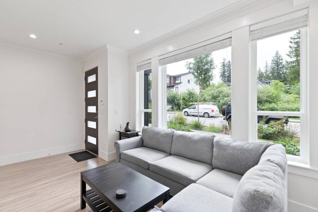 Silver Valley Sanctuary – This bright and modern 4 bedroom, 3.5 bath detached home in Silver Winds offers over 2,000 sq. ft. of stylish living, just steps to Maple Ridge Park, the Alouette River, and endless hiking/biking trails. Featuring air conditioning, a spacious open-concept main floor with laminate floors and cozy gas fireplace, and a designer kitchen with quartz counters, oversized island, and stainless steel appliances, this home is designed for comfort and function. Upstairs, the private primary suite includes a full ensuite, joined by two more generous bedrooms. The fully finished basement with separate entrance offers a rec room with wet bar, 4th bedroom, bathroom, and rough-in for laundry—ideal for extended family or a nanny suite. Enjoy the detached single garage plus side parking, corner location with extra windows, and a fenced yard backing green space. Pets negotiable with deposit, utilities extra, and flexible lease terms available (month-to-month, 3–6 months, or 12 months).