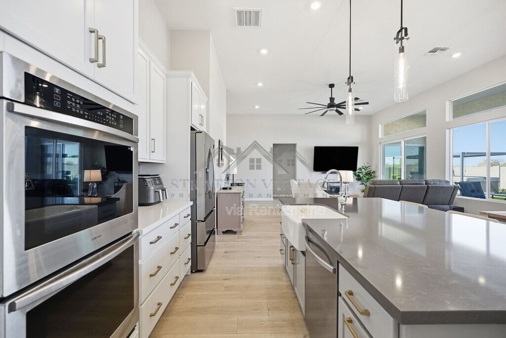 ***Note: The home is offered unfurnished, and no furnishings are included..*** This nearly new 2024 home, situated in a quiet gated Peoria community, offers modern layout with custom cabinetry, double ovens, and premium Hinkley lighting. The functional design extends to a fully upgraded, climate-controlled epoxy garage and a professionally landscaped backyard featuring dual pergolas, pavers, and low-maintenance synthetic grass. Residents can enjoy immediate access to neighborhood amenities, including walking paths, dog parks, and playgrounds, without the wait or added cost of new construction. *BEWARE OF SCAMS! We do not list our homes on Craigslist or Facebook Marketplace. Please get in touch with Stratton Vantage Property Management to confirm availability and rent price* MOVE-IN COSTS Security Deposit: 1.25x–1.5x monthly rent (75% may be refundable) First Month’s Rent + 4.4% admin fee + $49.95 Resident Benefits Package setup fee $225 lease preparation fee *Pets: If applicable, $250 non-refundable pet fee per pet + first month’s pet rent ($60–$80 per pet, includes $30 pet admin fee). Some breed restrictions apply. Does not apply to Assistive Animals MONTHLY CHARGES Rent + 4.4% admin fee $49.95 Resident Benefits Package (includes renters’ insurance, air filter delivery, credit reporting, rewards program, and more) *Pets: If applicable, $60–$80 pet rent per pet (includes $30 pet admin fee). Does not apply to Assistive Animals VIEWING INSTRUCTIONS Call (FOUR EIGHT ZERO FIVE FIVE THREE EIGHT ZERO NINE FOUR) to schedule a self-guided tour. IMPORTANT Before applying, please visit to review rental qualifications and legal disclosures. ADDITIONAL DISCLOSURES Stratton Vantage Property Management is an Arizona LLC (dba of Brewer & Stratton Property Management LLC) 12-month lease minimum; longer terms may be negotiable. We follow the Fair Housing Act and do not discriminate based on race, color, religion, sex, handicap, familial status, or national origin. All info is deemed reliable but not guaranteed. We are not responsible for any errors or omissions in this listing. By submitting your information on this page you consent to being contacted by the Property Manager and RentEngine via SMS, phone, or email.
