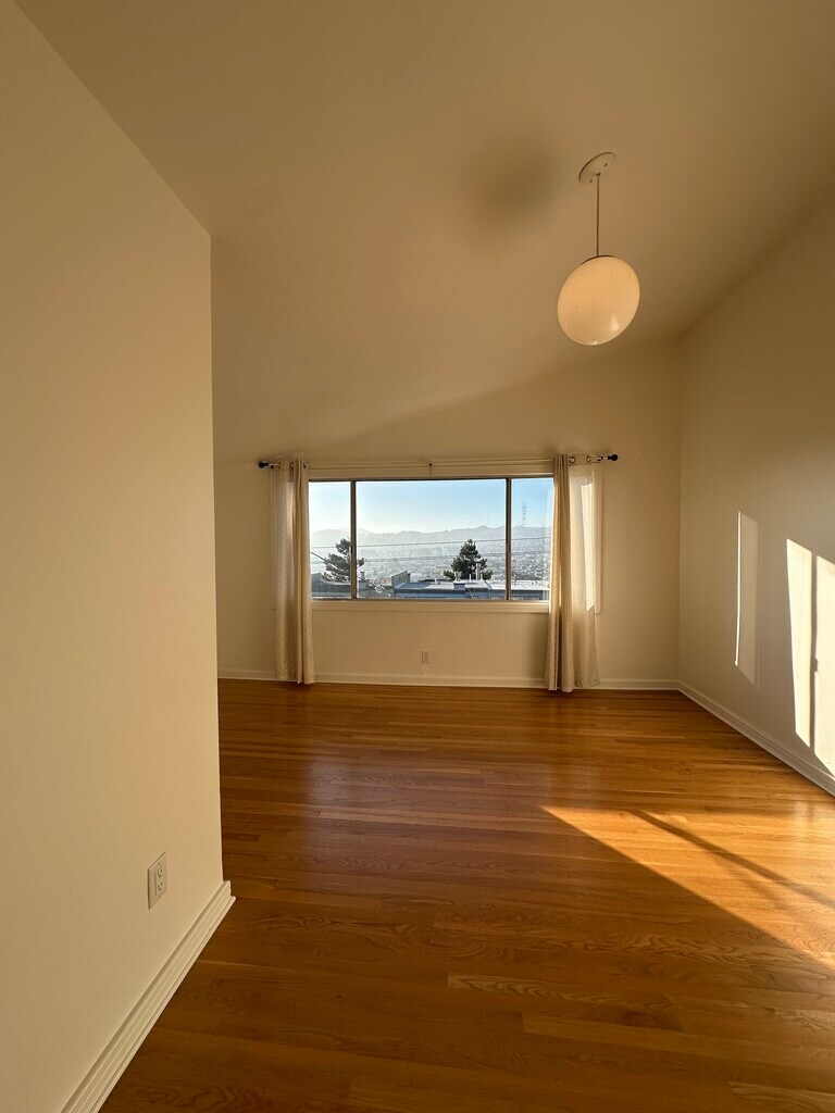 Description:This townhouse is on De Haro and 25 Street on Potrero Hill, known for its sunny climate and amazing restaurants, bars and shops. Whole Foods is nearby at Rhode Island and 17th Street. This townhouse has super easy access to 280 and 101. Townhouse includes:Two bedrooms, one with gorgeous view looking out over the Mission, you can see Golden Gate Bridge as well as Bay Bridge, the other bedroom looks out on the huge back yardHuge backyard – perfect for relaxingLight filled living/dining areaHardwood floorsKitchen with gas stove, refrigeratorNice sized bathroom with bath and showerLots of closet spaceWasher and dryerGarage 2 car parking (driveway and garage)Security deposit is last months rent and $1000.00 cleaning depositThis is a non-smoking unit.No pets allowedApproximately 850sq ft Location:De Haro between 24th and 25th St, San Francisco, CA
