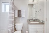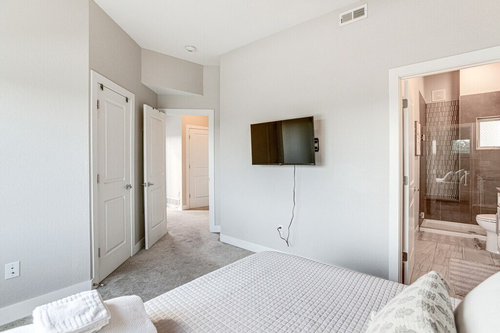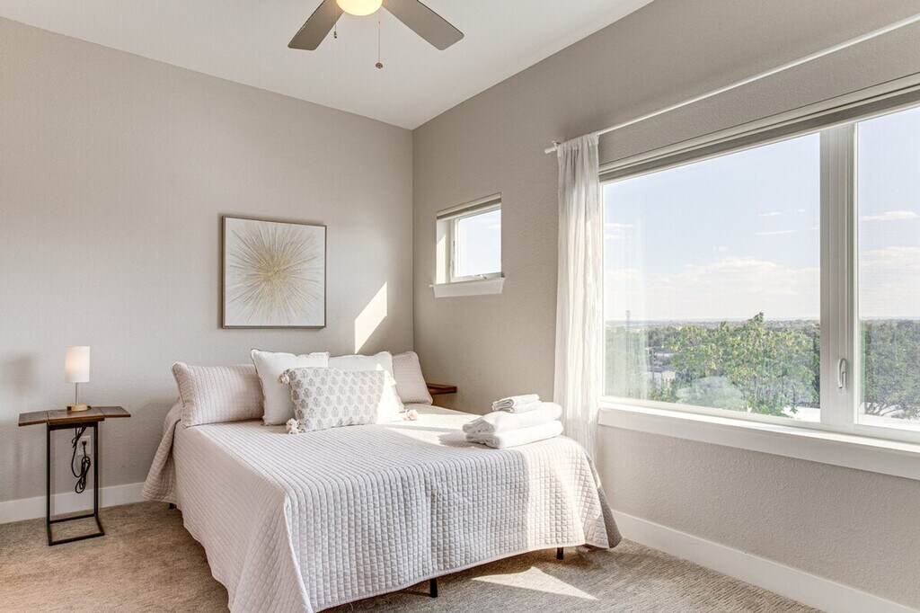 The advertised rate of $4,812/month is the lowest available price, based on a 1 month(s) and 2 day(s) stay with a move-in date of February 17, 2026. Rates vary depending on the duration of stay, season, and other parameters. For exact pricing and additional pricing components, please visit our website and enter your desired move-in and move-out dates. The rate is applicable when billed upfront; it can be higher if billed in multiple payments. Feel at home in this centrally located corner unit near parks and top downtown Denver attractions. This 2-bedroom, 2.5-bath townhome is perfect for your next long-term stay. While this 3-story townhome offers step-free entry, interior stairs are required to access all bedrooms on the 3rd floor. This apartment features smart TVs, a 4-person dining table, and 2 en-suite bathrooms. The kitchen is equipped with a stove/oven, refrigerator, dishwasher, Keurig coffee maker (starter coffee pods provided), microwave, toaster, dishware/flatware, cooking basics, trash bags/paper towels, and a breakfast bar. Additional amenities include free Wi-Fi, central air conditioning/heat, linens/towels, complimentary toiletries, a hair dryer, a washer/dryer, laundry detergent, and an iron/board. Garage parking is available for 2 vehicles, and free street parking is available. Enjoy easy access to train stations and interstates. Visit the nearby Empower Field at Mile High or explore Meow Wolf's wonders. Top off the day with sprawling views of the city and Mount Evans from the townhome's rooftop deck. The apartment is located across the street from a park and 2 blocks from the train station. No smoking, pets, events, parties, or large gatherings are allowed. Additional fees and taxes may apply. A photo ID may be required upon check-in. This property features 2 exterior security cameras: 1 camera is located on the doorbell facing the front entrance, and 1 camera is located over the garage facing the garage entrance. The cameras are outward facing and do not look into interior spaces. The cameras will record video and sound when motion is detected or when the video doorbell button is pressed. [SI]