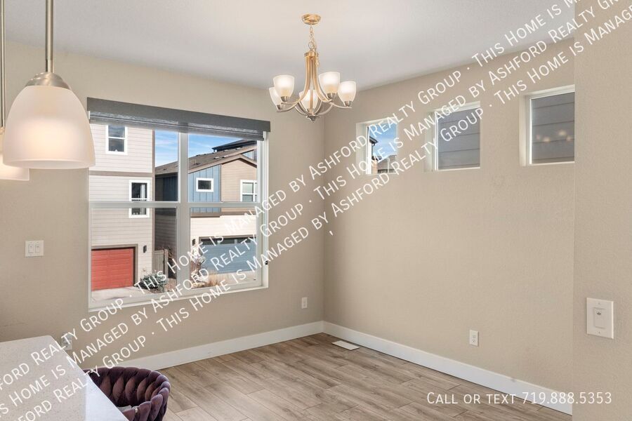 If you love modern design, youll feel right at home in this stylish three-story urban residence located in Midtown at Foothills Farm. Set against the stunning backdrop of Pikes Peak and the Front Range, this home offers both comfort and unforgettable views. The bright, open main level features luxury vinyl plank flooring, a convenient half bath, and a spacious living room with vaulted ceilings. Step out onto the balcony to enjoy views of a large green space and a peek at the mountain topsperfect for morning coffee or evening relaxation. The kitchen is beautifully appointed with maple charcoal cabinets, quartz countertops, under-cabinet lighting, a generous walk-in pantry, stainless steel appliances, and a gas cooktopideal for everyday living and entertaining alike. Upstairs, the spacious primary suite includes a large private bathroom and an oversized walk-in closet. A second bedroom with its own full bath and a conveniently located laundry area complete the upper level. Thoughtful upgrades like bidet-equipped toilets add an extra touch of comfort throughout the home. The lower level offers an open flex space that can easily serve as a third bedroom, home office, or creative retreat. The location truly shinesclose to the Air Force Academy, shopping, theaters, and a wide variety of restaurants, with schools within walking distance and easy access to award-winning District 20 schools. Enjoy views of the Air Force Academy chapel and stadium, and even watch the Thunderbirds fly overhead from your deck. This inviting, well-appointed home offers the perfect blend of modern style, comfort, and an exceptional locationwelcome home! A PROSPECTIVE TENANT HAS THE RIGHT TO PROVIDE TO THE LANDLORD A PORTABLE TENANT SCREENING REPORT, AS DEFINED IN SECTION 38-12-902(2.5), COLORADO REVISED STATUTES; ANDIF A PROSPECTIVE TENANT PROVIDES THE LANDLORD WITH A PORTABLE TENANT SCREENING REPORT, THE LANDLORD IS PROHIBITED FROM: CHARGING THE PROSPECTIVE TENANT A RENTAL APPLICATION FEE; OR CHARGING THE PROSPECTIVE TENANT A FEE FOR THE LANDLORD TO ACCESS OR USE THE PORTABLE TENANT SCREENING REPORT. Cats Only Disposal Disposal Dryer Garage Garage Pets Allowed Range Range Views Views Washer Washer/Dryer In Unit