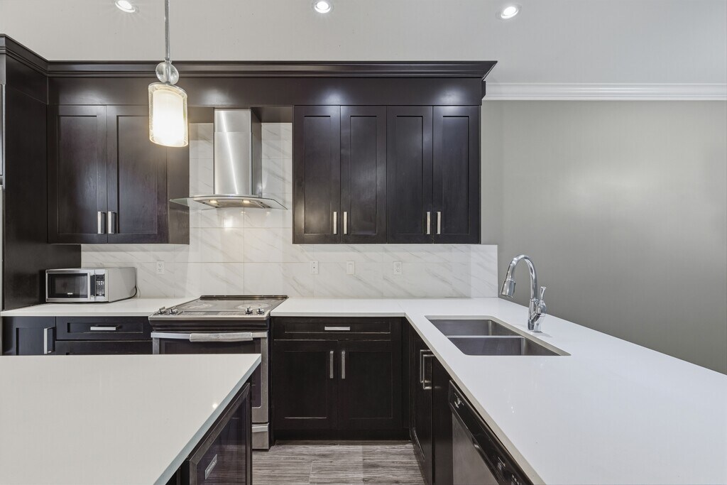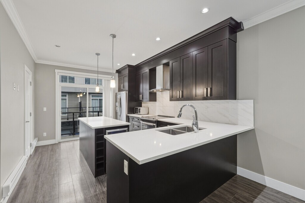 Now available for rent and freshly painted. Welcome to Panorama 62! This gorgeous, impeccably maintained corner 4-bedroom, 3.5-bath townhouse offers 1,615 sq. ft. of stylish living space with a ground-level bedroom and full bath—perfect for guests or in-laws. The main floor features 9' ceilings, a modern kitchen with stainless steel appliances, quartz countertops, a large island with a built-in wine fridge, and ample cabinetry. Enjoy a bright south-facing balcony, while the upper level includes 3 spacious bedrooms, 2 full bathrooms, and in-suite laundry. Additional highlights include parking for two vehicles (one covered and one carport) and a large walk-out patio off the living area, ideal for families and entertaining. Conveniently located near schools, shopping, parks, and public transit, with easy access to King George Blvd and Highway 10, this stunning home offers the perfect blend of comfort, style, and convenience. One Year Lease | Screening Required. Utilities Separate. Property Listed by Four Seasons Property Management Ltd