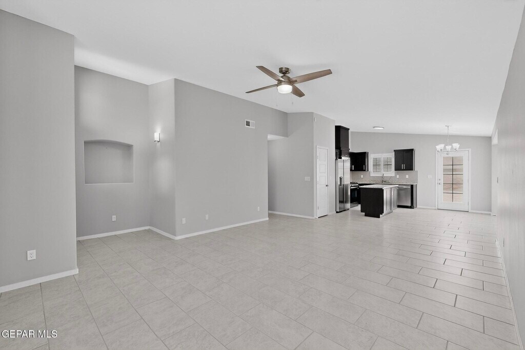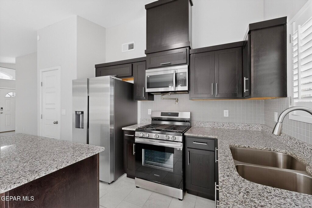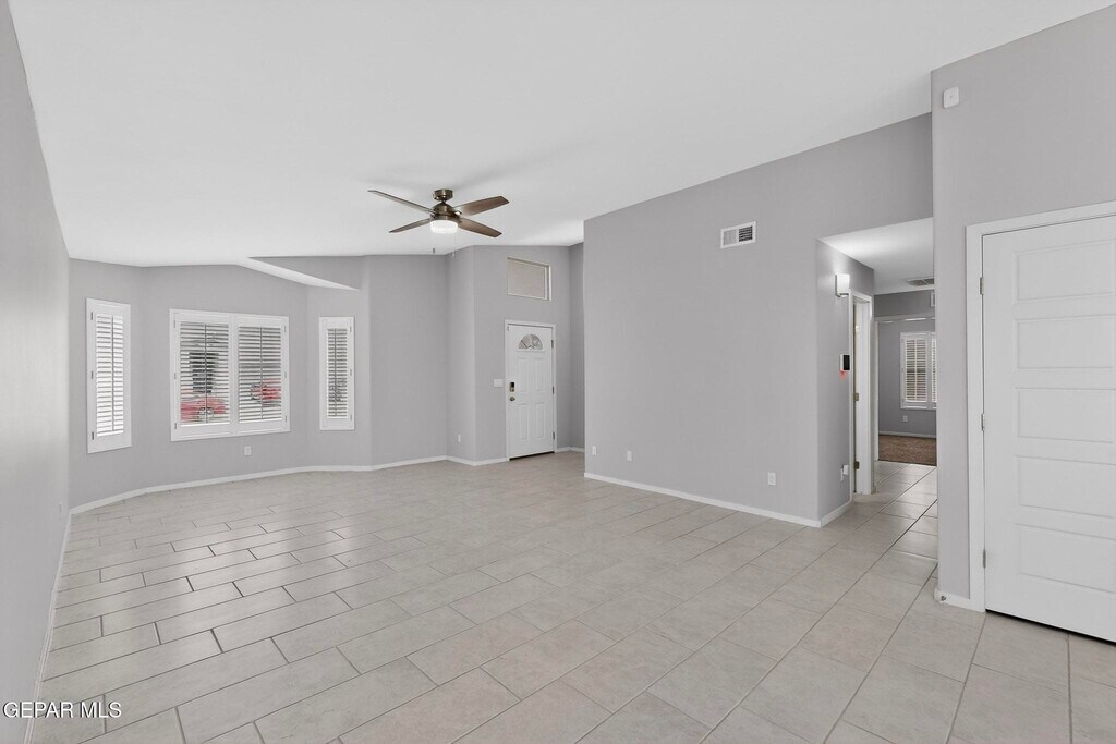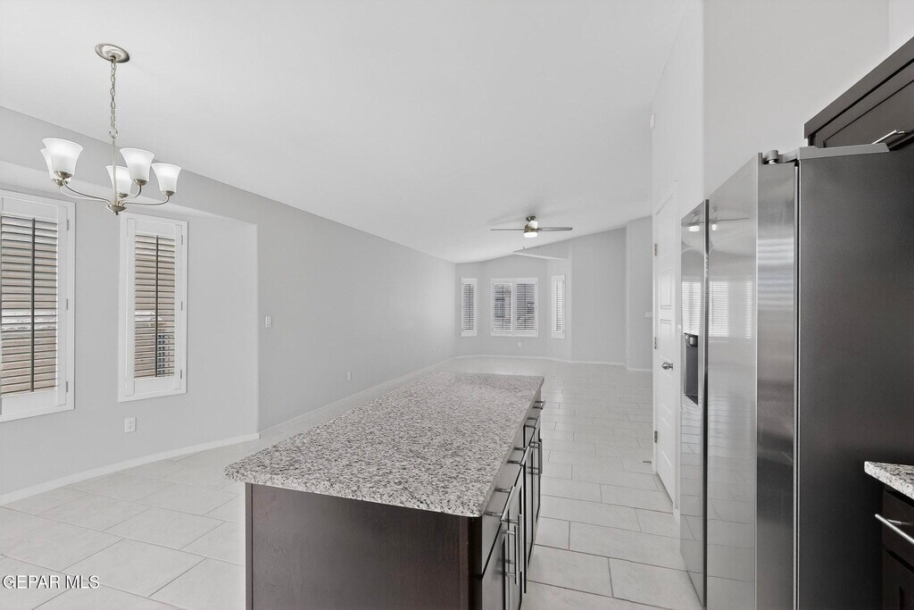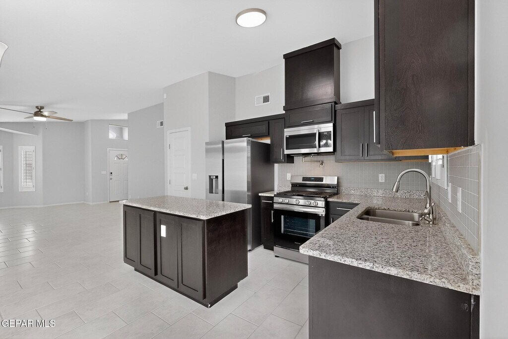 Single-level 3-bedroom home located in the desirable Horizon Town Center area. This well-designed floor plan offers a welcoming family room just off the entry that opens seamlessly to the dining area and kitchen,creating a bright and functional living space ideal for everyday living and entertaining. The kitchen comes complete with a full appliance package,granite countertops,pantry,and ample cabinet space. Tile flooring throughout the main living areas adds durability and easy maintenance,while the bedrooms provide comfortable retreats. The primary suite includes a spacious walk-in closet and a well-appointed bathroom with dual vanities and a large walk-in shower. The backyard offers a covered patio perfect for outdoor relaxation and gatherings. Conveniently located near Horizon Blvd with easy access to shopping,restaurants,schools,parks,and medical services. Residents also enjoy proximity to Horizon Golf Course,local walking trails,and growing retail developments in the Horizon Town Center area