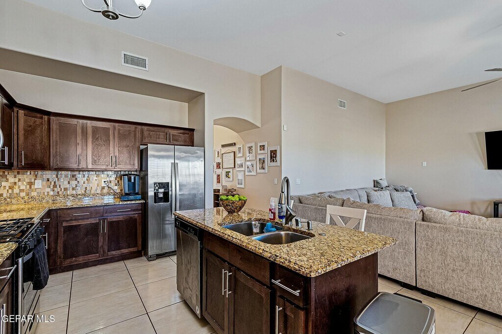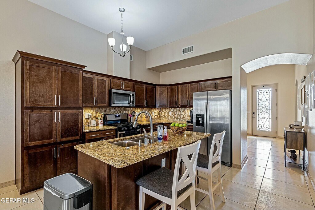 Beautiful 4-bedroom,2-bathroom home in the sought-after Horizon neighborhood is a must-see! The open-concept living and dining areas are perfect for hosting gatherings,while the kitchen,with its large island,ample counter space,and stainless steel appliances,is a dream for any chef. The spacious primary suite features a double vanity and a soaking tub for ultimate relaxation. The backyard offers endless possibilities for creating your private retreat. Water softner. Conveniently located near shopping,dining,entertainment,and Fort Bliss--this home won't last long. This homes available for move in on March 6,2026