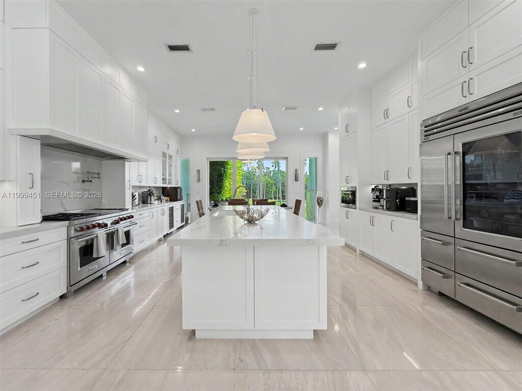 Beautifully renovated 4BR/5.5BA home with separate guest house in prestigious Deering Bay, overlooking the golf course. Light-filled interiors feature soaring ceilings, spacious living areas, limestone floors on the first level, and river-recovered original-growth heart pine floors upstairs. Updated chef’s kitchen with custom cabinetry, oversized island, and all new finishes opens to family and dining areas. Renovations include new kitchen and baths, updated electrical, plumbing, and lighting, plus 4 new Trane variable-speed HVAC systems. Spacious primary suite offers a private balcony and spa-like bath. Resort-style pool and patio surrounded by lush landscaping create a private outdoor retreat. 2.5-car garage and oversized driveway offer ample space for multiple vehicles and a golf cart. MLS # A11999451