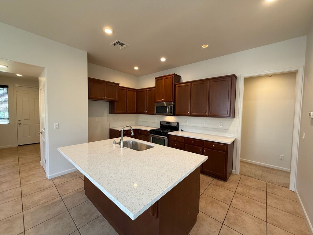 Welcome to this updated single-story home in convenient Manteca! This home features 3 bedrooms, 2 full bathrooms and an extra-office or den space. Be sure to check out the video tour on our website or YouTube channel. This house boasts a range of desirable features. Tile floors in the entry, kitchen and bathrooms. This home has a spacious layout with a modern touch and has just been freshly painted. The kitchen is a chef's dream with new quartz counters, a stainless-steel sink in the center island, ample cabinet space and closet pantry for extra storage. Enjoy cooking on the gas range and oven. Built in dishwasher and microwave hood. The primary suite includes a double sink vanity, large shower and walk-in closet for added storage. Tons of additional cabinet storage throughout the home. Indoor laundry hookups. The attached two car garage with EV charger and opener provides convenience. Landscaped front and backyards with sprinkler system. Tenant is responsible for all utilities and yard care. Pets are subject to approval with modified terms. Rent is $2695 with at least a one-year rental agreement. Security deposit is $2695. $50 non-refundable application fee. All persons over the age of 18 must apply and pay their own application fee. Please visit our website at or call for more details. Five Star Property Management Broker Lic# 01933920 office fax 2132 Wylie Drive Modesto, CA 95355