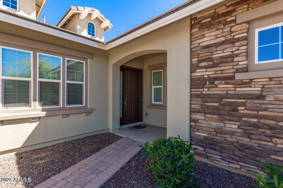 Move into this highly upgraded property on a premium corner lot in Marley Park! Delightful curb appeal w/easy-care landscape,paver driveway,& stone accents is just the beginning. Impressive interior showcases neutral palette,tile floors,& an inviting living/dining room. Sliding glass doors open to the backyard from the spacious great room merging the indoor experience w/the outdoors. Elegant chef's kitchen boasts a plethora of cabinets w/crown molding,gleaming granite counters,SS appliances,a large island w/a breakfast bar,& a breakfast nook. Quaint main suite with an impeccable EnSuite w/dual vanities,& a walk-in closet. Create lasting memories in the expansive backyard w/a covered patio.