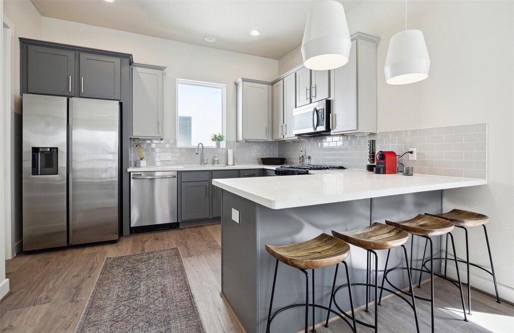 Three-story home with 3 bedrooms,3.5 baths,and an attached two-car garage. First floor offers private bedroom with full bath. Second floor features open-concept living with 10' ceilings,modern kitchen,breakfast bar,and balcony. Third floor includes primary suite with walk-in closet plus secondary bedroom. Low-maintenance functional layout in a convenient location. MLS# 33354749