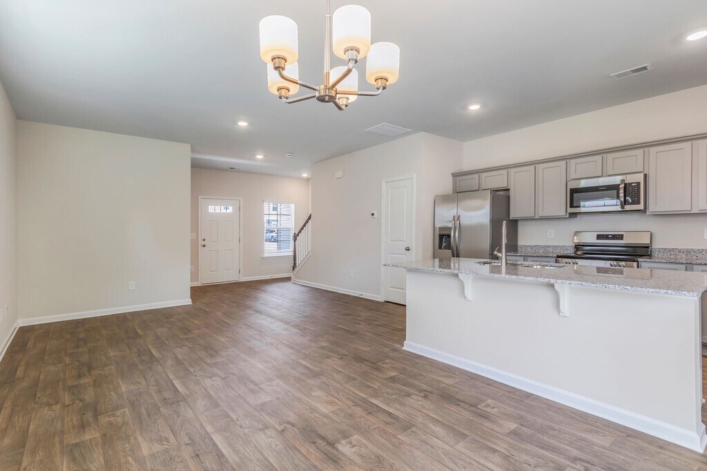 Welcome to this brand new end-unit townhome, offering modern living and perfect location. This luxurious home features 3 bedrooms and 2.5 bathrooms, designed for comfort and convenience. The first level showcases an open floor plan that seamlessly connects the kitchen, living, and dining rooms. The kitchen is equipped with stainless steel appliances, sparkling granite countertops, a pantry, and kitchen island with a sink and counter seating. An oversized laundry room and a powder room are conveniently located on the first floor. Glass doors lead to a rear covered patio, a locking storage closet, and a backyard area. Upstairs, you'll find three spacious bedrooms and two full bathrooms. This townhome is located in Colony Park, a luxury townhome community in Simpsonville. It is within walking distance to Bryson Middle and Hillcrest High, just minutes from I-385 and close to all shopping and entertainment on Fairview Road. Schools: Bryson, Bryson, Hillcrest Utilities: Duke Energy, Piedmont Natural Gas, Greenville Water Directions: Exit 27 off 385 to Fairview, then turn Right on Southeast Main Street, then turn Right on South Industrial, then turn Left on Colony Center Way. Qualifications: -All adults must have at least a 600-credit score -No outstanding collections -Clean background -Bring home at least 3x monthly rent (net pay)