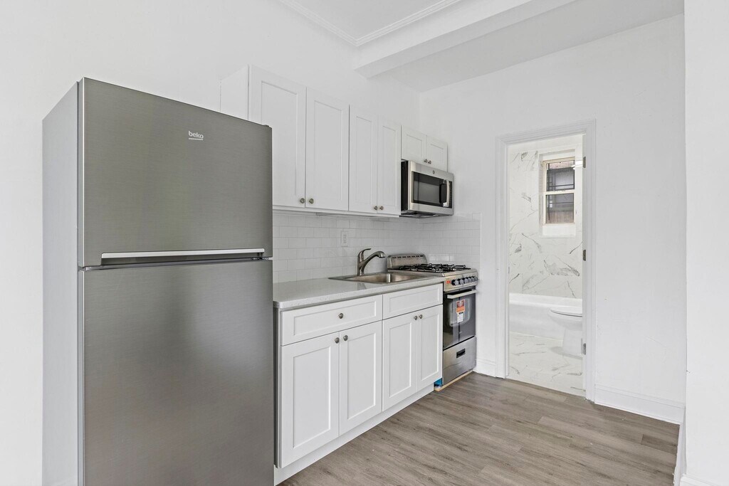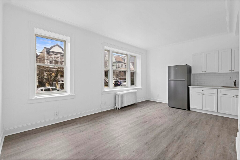 Come visit this new renovated home in the heart of Jersey City! Upon entrance, you'll be greeted with a spacious living room/kitchen combo, with large windows that flood the space with natural light and hardwood flooring throughout. The open layout chef's kitchen comes equipped with brand new stainless steel appliances and oversized ceilings. Around the corner, you'll come to find your master bedroom with abundant closet space and lofted ceilings. Come schedule a showing!