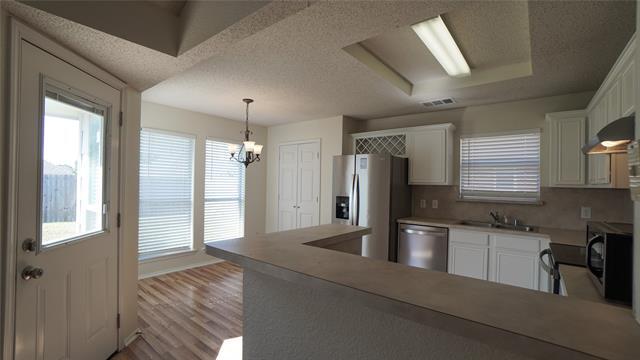 Beautifully maintained 3-bedroom, 2-bath home in the desirable Windmill Ridge Estates community in Rockwall ISD! The open floor plan offers split bedrooms for privacy, a spacious living room with a cozy gas-starter fireplace, and a large eat-in kitchen with plenty of cabinet space, pantry, and stainless steel appliances. The private owner’s suite features an ensuite bath with a jetted garden tub, dual vanities, and a walk-in closet. Additional highlights include vaulted ceilings, decorative lighting, luxury vinyl plank flooring, and a covered patio with rain gutters—perfect for relaxing or entertaining. Located just minutes from shopping, dining, and The Harbor District at Lake Ray Hubbard, this home offers both comfort and convenience. Don’t miss your chance—schedule a showing today!