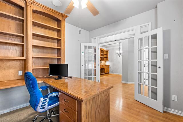 Custom-Built Elegance in Larkspur Subdivision, Lantana. Nestled in the **prestigious Larkspur Subdivision** of Lantana, this one-of-a-kind custom home, designed as the builder’s personal residence, exudes timeless elegance and unparalleled craftsmanship. Every detail has been thoughtfully curated, from the exquisite millwork and custom built-ins to the premium finishes throughout. Step inside to discover hardwood floors that flow seamlessly throughthe spacious living areas, complemented by a chef’s dream kitchen featuring a gas cooktop with a pot filler, a built-in fridge, and custom cabinetry, including washer and dryer cabinets for added convenience. The travertine shower and floors elevate the spa-like primary bathroom experience, while the custom-built hutch and office shelving provide functionality and charm. The garage is a standout feature, boasting an epoxy-coated floor, extra-deep bay perfect for a boat or third car, and an upgraded fast-charging electric vehicle charger. Solar panels enhance energy efficiency, keeping electric bills low. This home offers flexibility and comfort for every lifestyle. All furniture can remain for tenants or be removed to suit your needs. Don’t miss the chance to own this exceptional property, where quality, location, and style meet harmoniously. Make this dream home your reality today!