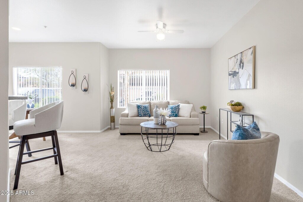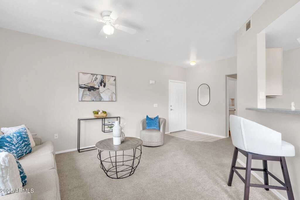 Cozy Condo Living in Fountain Hills! This charming 1-bedroom,1-bath condo at Four Peaks Condominiums offers 778 sq. ft. of bright and open living space,designed for easy and comfortable living. The spacious living room is filled with natural light and soft neutral tones,creating a warm and inviting atmosphere.