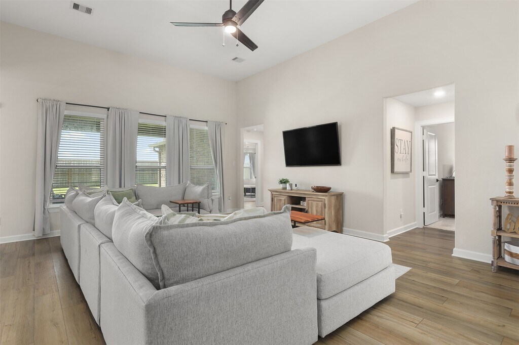 Fall in love with this stylish,move-in-ready home in the heart of Lago Mar,where everyday living feels like a vacation! Inside,you’ll find an open-concept layout with rich plank flooring,a bright living area,and a sleek kitchen featuring a granite island,white herringbone backsplash,and tons of storage! The flexible dining nook is perfect as a workspace or fun hangout spot,while the spacious primary suite boasts a bold accent wall,spa-like bath with soaking tub,double vanities,and two walk-in closets. Enjoy the amenities of Lago Mar,a vibrant community and dive into the 12-acre lagoon,perfect for soaking up the sun on white sandy beaches. Relax in resort-style pools,fitness centers,and walking trails for that perfect day! Exciting nearby additions like a new H-E-B,restaurants,shopping,and a new Dickinson ISD school underway,it's not just buying a home—you’re joining into a whole lifestyle! This home has it all—snag your showing today & make Lago Mar your new reality! MLS# 84563942