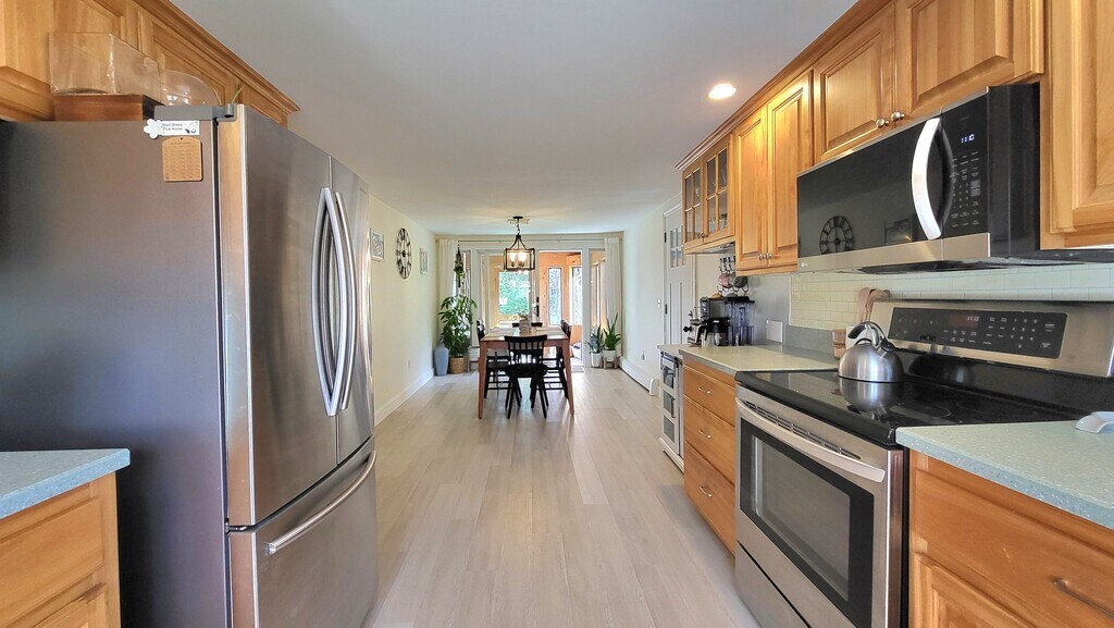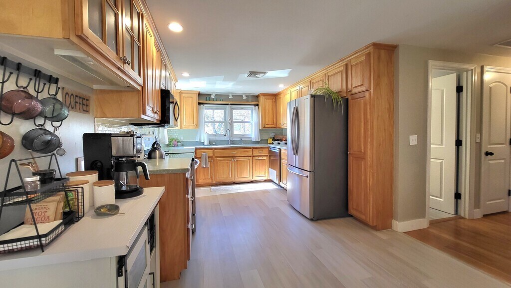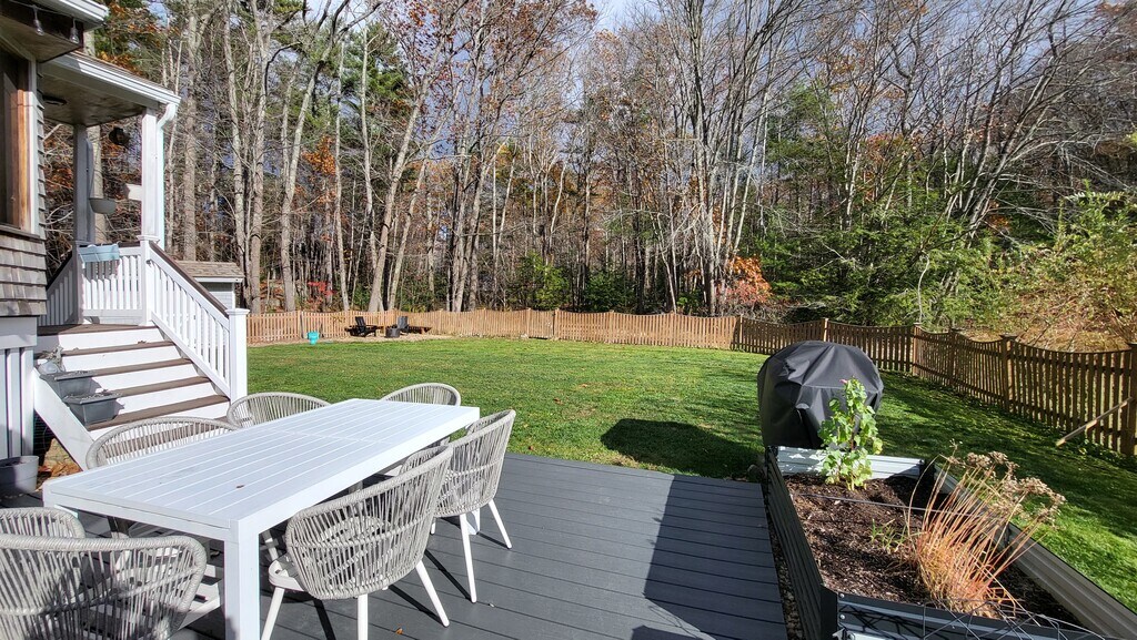 Experience year-round comfort in this beautifully maintained 3-bedroom, 2-bath home offering space, versatility, and thoughtful upgrades throughout. The main level features a spacious, fully equipped kitchen with ample cabinetry and a coffee bar, flowing seamlessly into a bright 3-season room that opens to a sprawling, fenced backyard complete with a new patio and raised garden beds—perfect for outdoor living. A spacious living room is flooded with natural light and a wonderful space to gather. The lower level is designed for both relaxation and productivity- offering a cozy den/family room with a wet bar and rustic built-ins, a custom home office with desk, a convenient laundry closet, and walk-up access to the garage and rear yard. A private guest bedroom with an en-suite full bath adds flexible living options. Additional highlights include central air, a single-car garage, a portable generator with whole-house connection, and attic storage. Located just minutes from York's famed beaches, Ogunquit Village, Perkins Cove, Mount Agamenticus, and major commuter routes, this home blends comfort, function, and plenty of room to enjoy every season. *Note: sauna, wood stove and furniture will be removed* Available January 1, 2026! Tenant is responsible for electric, oil, internet/cable and snow removal. Water, sewer, and lawn care is included. A credit/background check, security deposit, first month's rent, and renter's insurance is required. A dog and/or cat is considered with owner approval & pet security deposit.