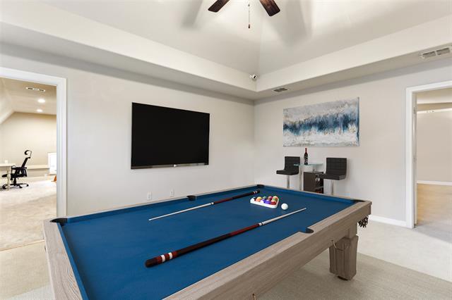 Recently refreshed with designer paint, plush new carpet, and the addition of a full bathroom, this stunning home is now available for lease and offers an exceptional blend of comfort, functionality, and refined style. Ideally situated on a premium corner lot in the highly sought-after Lawler Park community, this residence delivers both impressive curb appeal and a thoughtfully designed layout. A charming courtyard entry with lush landscaping and a striking architectural roofline creates a warm and welcoming first impression. Inside, you’ll find a private study with French doors, custom built-ins, and plantation shutters, perfect for working from home. The main level features four spacious bedrooms, an increasingly rare and highly desirable layout, while a private upstairs guest suite with a full bath offers flexibility for guests or multigenerational living. Elegant finishes including rich hardwood flooring, detailed millwork, and plantation shutters enhance the home’s timeless appeal. At the heart of the home, the gourmet kitchen is designed to impress, featuring an oversized island, gas cooktop, double ovens, custom cabinetry, and a stylish tiled backsplash. The kitchen flows seamlessly into the sunlit breakfast nook and expansive living room, highlighted by a cast-stone fireplace and a wall of windows that fill the space with natural light. The primary suite is a true retreat, offering a spa-like bath with dual vanities, soaking tub, separate shower, and a large walk-in closet with convenient access to the utility room. Upstairs, enjoy a spacious game room and media room, ideal for relaxing or entertaining. Step outside to a beautifully landscaped backyard with a covered patio and built-in grill, perfect for outdoor dining and gatherings. A three-car garage completes this exceptional lease opportunity.