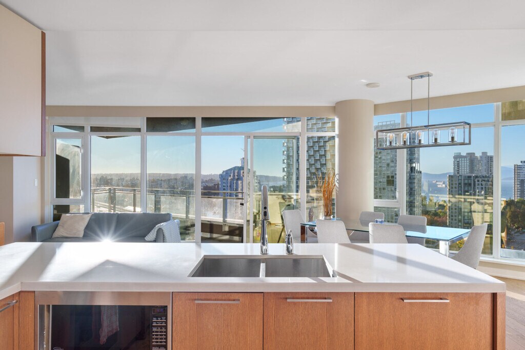 Enjoy sophisticated downtown living and feel at home in this bright 2-bedroom, 2-bath condo offering panoramic city views and elegant interiors. Floor-to-ceiling windows fill the home with natural light, while a private balcony provides the perfect spot to unwind. Enjoy a fully equipped kitchen, cozy bedrooms, modern bathrooms, in-suite laundry, a comfortable seating and a large smart TV for relaxing nights, and a dining area with seating for six beside large windows. Central heating and cooling are included for year-round comfort. One secure parking space is included. Perfectly located in downtown Vancouver’s vibrant core, this apartment is just minutes to the False Creek Seawall, David Lam Park, and the lively Yaletown dining district. Explore chic cafés, waterfront patios, and boutique shops just minutes away. The area blends modern city energy with scenic tranquility, surrounded by parks, markets, and entertainment venues. Granville Island, Sunset Beach, and English Bay are all within easy reach, offering endless options for dining, leisure, and exploration. Easily accessible by transit with Yaletown-Roundhouse SkyTrain, major bus routes, and bike paths nearby. This apartment is within walking distance to shops, restaurants, and grocery stores, with quick connections to Kitsilano, Granville Island, and Stanley Park. YVR Airport is a 30-minute drive, Downtown Vancouver is an 8-minute drive, Sunset Beach is a 5-minute drive, and the Vancouver Art Gallery is a 6-minute drive. The nearest grocery/pharmacy is a 3 to 5-minute walk, and the nearest transit stops are a 1-minute walk. No parties, events, or large gatherings are allowed. Smoking is prohibited in the unit or on the balcony. [SI]