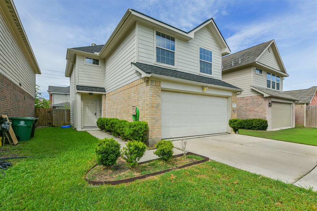 Welcome to your humble abode! This well kept property features an expansive driveway,two car garage,and an outdoor shed for your storage purposes. Enjoy family gatherings in the open concept living room featuring a a gas fireplace (we all know you'll probably never use),overlooked by a fully equipped kitchen; with appliances included! All bedrooms upstairs along with both full bathrooms so you can enjoy your guests,and your privacy! Vinyl flooring and tile fill the entire home while each bedroom comes with carpet. Washer & dryer included! Direct access to 45 & Beltway for easy entry into Downtown Houston & Galveston. Make this quiet and quaint neighborhood your home for years to come! ONE CAR GARAGE - GARAGE HAS BUILT IN STORAGE AREA* MLS# 52673239