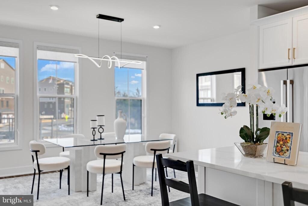 Introducing a rare first-time rental opportunity, a distinguished 24-foot-wide Trace model townhome nestled within the prestigious Arpina Valley community. Spanning four thoughtfully designed levels, this residence delivers an elevated standard of living with 4 bedrooms, 5 bathrooms (3 full, 2 half), and a two-car rear-load garage. Architecture & Interior Craftsmanship Soaring 9-ft. ceilings across the first three levels and 8-ft. ceilings on the upper floor create an expansive, airy atmosphere. Refined solid oak staircases connect every level, complemented by wide-plank Luxury Vinyl Plank (LVP) flooring throughout the main living areas and plush stain-resistant carpet in the bedrooms. The entry level presents a private bedroom suite with a full bath — ideal as a guest retreat or dedicated home office. Chef-Inspired Kitchen At the heart of the residence, the designer kitchen is appointed with Bosch® stainless steel appliances, a five-burner cooktop with chimney hood, single wall oven with integrated microwave, Kohler® undermount sink, upgraded white quartz countertops and backsplash, soft-close white cabinetry, and a centralized pantry with solid shelving a culinary environment built to impress. Main Living Level The open-concept family and dining areas flow effortlessly from the kitchen, bathed in natural light through walls of windows. A private deck extends the living space outdoors, offering a serene setting for morning coffee or evening relaxation. Owner's Suite & Upper Bedrooms The primary suite is a sanctuary unto itself — featuring a spa-caliber en suite bath with dual vanities, quartz countertops, a frameless glass shower, and floor-to-ceiling designer tile. A massive walk-in closet ensures effortless organization. Secondary bedrooms are generously proportioned and served by a well-appointed hallway full bath. A dedicated bedroom-level laundry with white cabinetry adds a layer of everyday luxury. Fourth-Level Rooftop Retreat The crown jewel of the home: a private rooftop terrace offering an unparalleled indoor-outdoor experience perfect for entertaining or unwinding under the open sky and overlooking park. Garage- Oversized garage to fit your SUV, storage, and Ready for an EV Charger. Commuter-Friendly Location in Northern Virginia Positioned approximately 1.6 miles from the Innovation Center Metro Station (Silver Line), the home provides seamless connectivity to Washington, D.C. and the broader Metro corridor. Quick access to Route 28, the Dulles Toll Road, and Fairfax County Parkway makes regional travel effortless. Dulles International Airport is approximately 3.5 miles away. Major employers — including Amazon Web Services, Google, Boeing, CIA, and Northrop Grumman are within close proximity. Vibrant destinations such as Reston Town Center and Frying Pan Farm Park are just minutes away, offering premier dining, shopping, and recreation.