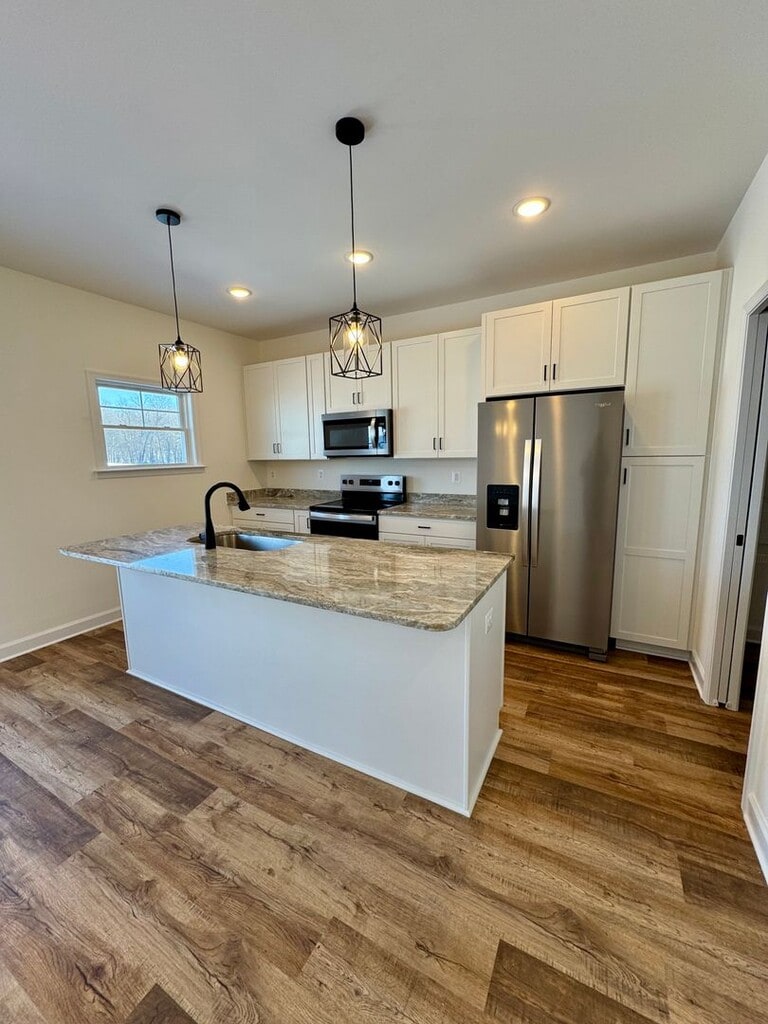 Check out this upscale townhouse featuring 4 bedrooms and 3.5 baths. This beautiful property features a large living room with a lot of natural light, an eat-in kitchen with a large island, stainless steel appliances, luxury vinyl plank, and single car garage. On site amenities include a pavilion with a grilling area and basketball hoops for your summer get togethers. Don't miss out on this amazing opportunity! Minimum One Year Lease No Pets