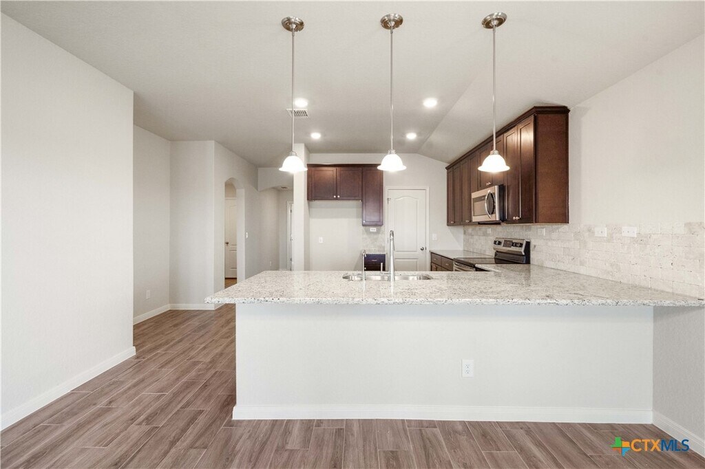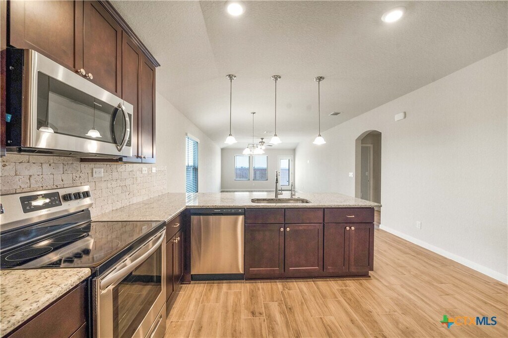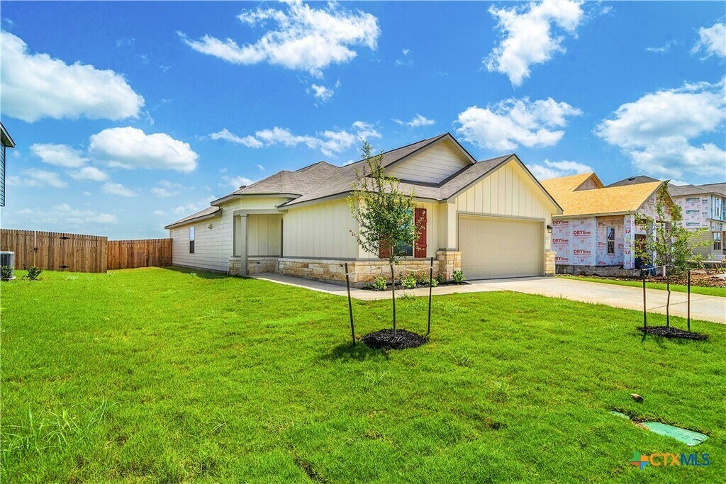 You won't want to miss this gem! Built-in 2021,this single-story home offers tranquil farmland views and a refreshing breeze with no neighbors behind. Inside,wood-looking tile flooring graces the living spaces,complemented by plush carpet in the bedrooms. A versatile flex space with a sleek glass door can serve as an office or fourth bedroom. The kitchen boasts a spacious walk-in pantry,stainless steel appliances (fridge included),granite countertops,and an elegant ivory dry-stacked backsplash. The master suite includes a double vanity and a stunning tiled walk-in shower. With Low E windows and ceiling fans throughout,comfort and energy efficiency are ensured. **All Hendricks Real Estate residents are enrolled in the Resident Benefits Package (RBP) for $49.95/month which includes liability insurance,HVAC air filter delivery (for applicable properties),move-in concierge service making utility connection and home service setup a breeze during your move-in,on-demand pest control,and much more! More details upon application.