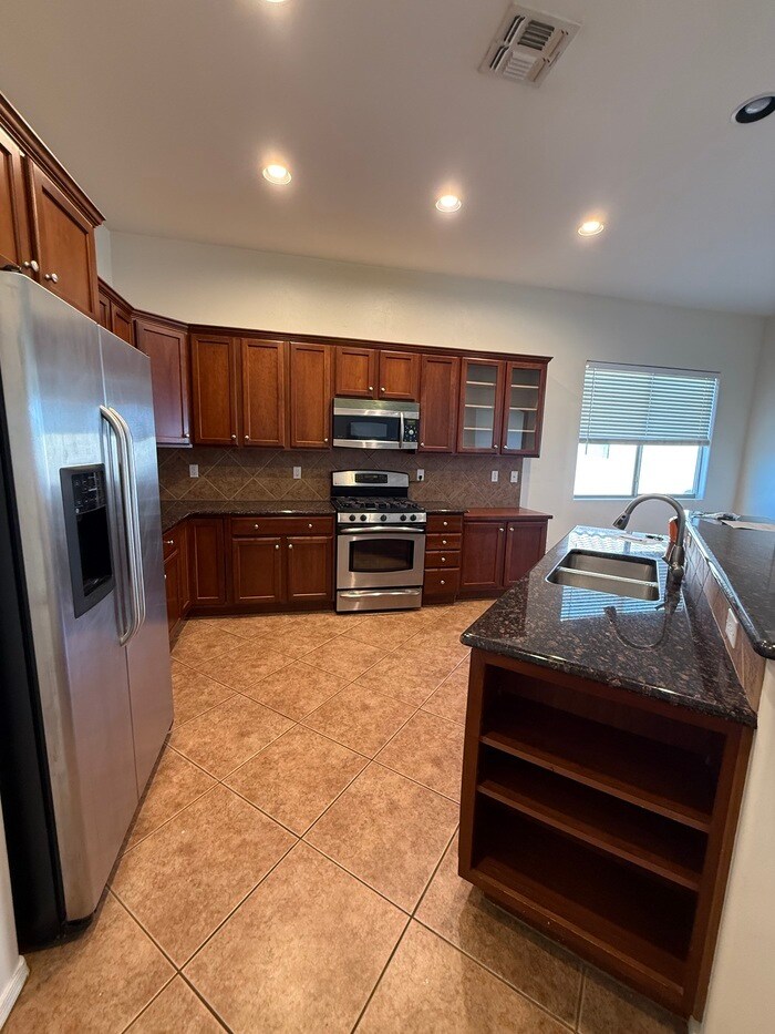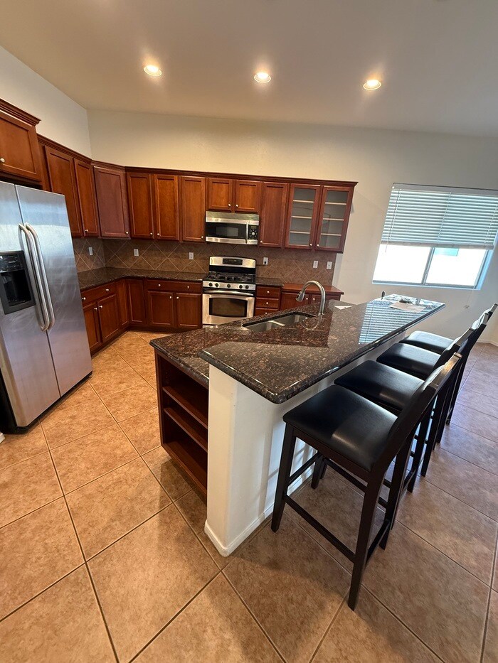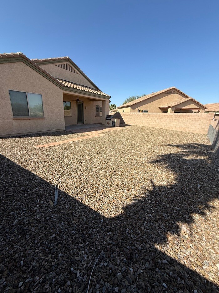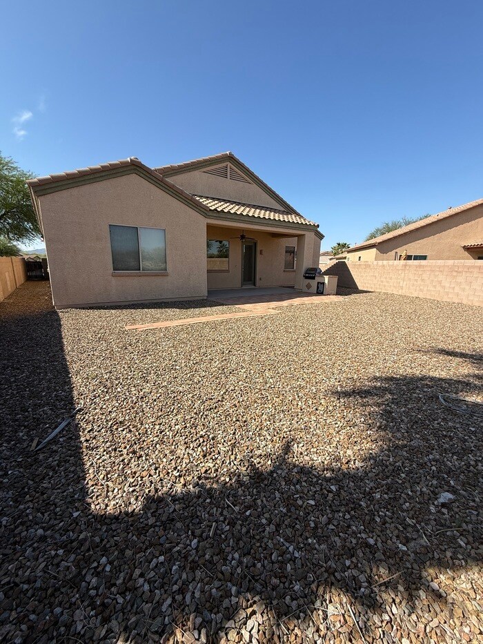 AVAILABLE NOW!! This beautiful four bedroom, two bath PLUS DEN, located in the desirable gated Vail community of Rancho Del Lago. With 2338 sqft of living space in this beautiful Lennar home with spacious great room and split bedroom floor plan. Upgraded stainless steel appliances in a bright open eat-in kitchen, breakfast bar and granite counter tops with custom paint and custom cabinets. This home is a must see! Large nicely landscaped oasis back yard backs up to a pond! No rear neighbors! Washer/dryer and additional refrigerator are in as is condition and will not be repaired by owners. Security Deposit equals one month rent and pets upon owner approval with $200 non-refundable pet fee. Call Rincon Ventures at or text Monica at to schedule a showing. Must view the property before submitting an application and NO ZILLOW APPLICATIONS ARE ACCEPTED. Many other similar properties at and minimum requirements are at least 3 times the rental rate in household income, no evictions and good rental history. This property allows self guided viewing without an appointment. Contact for details.