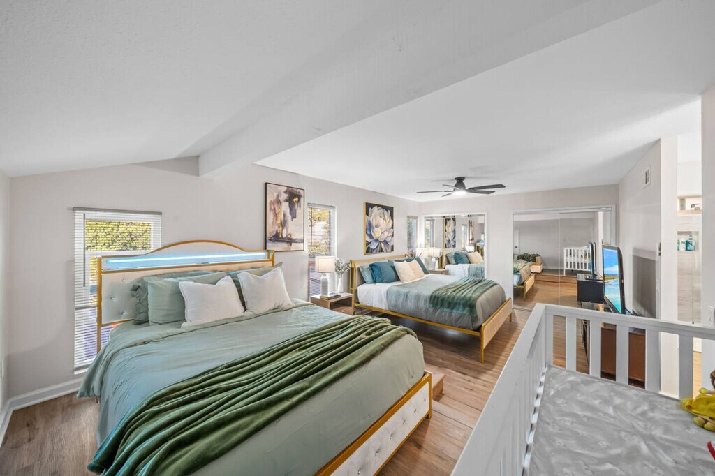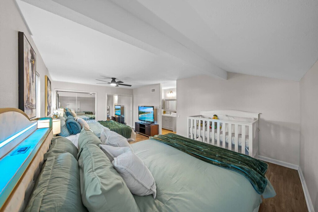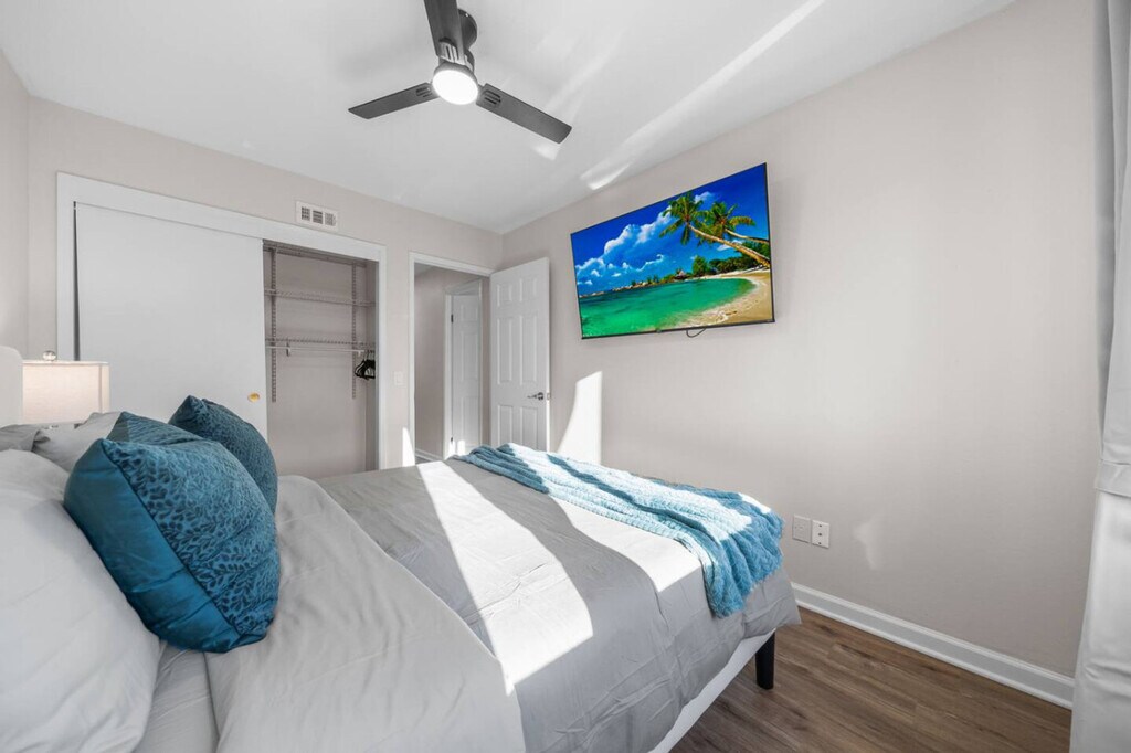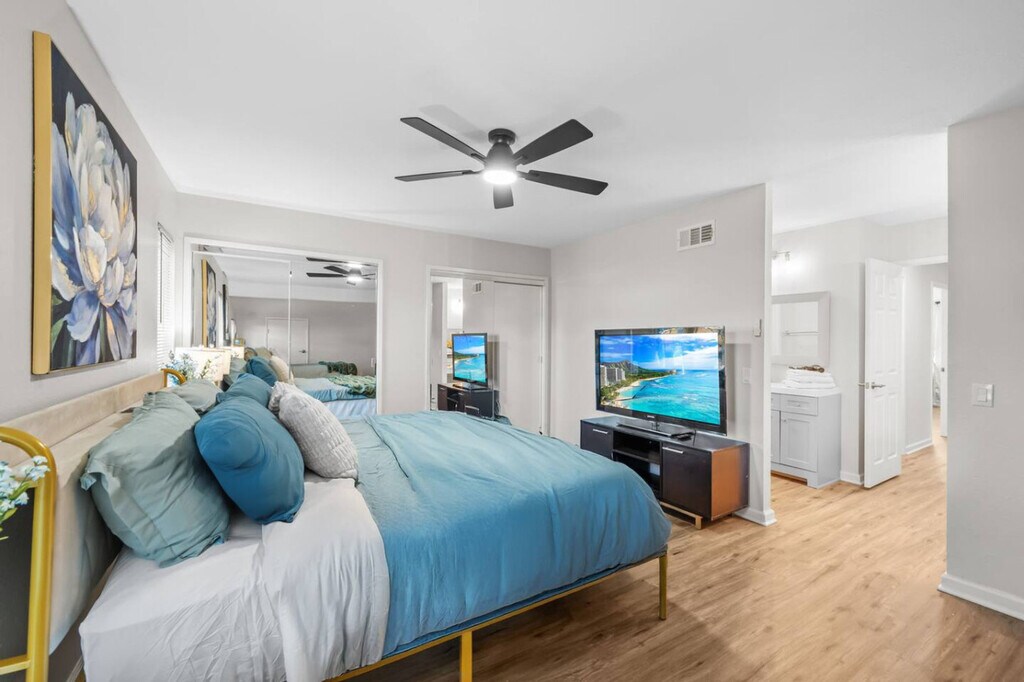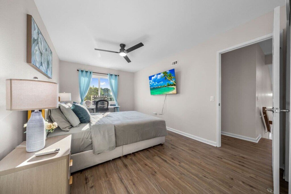 Welcome to this family home in San Diego! Feel at home in this entire home, which features a king-size bed and access to a spacious backyard with a pool. The centrally air-conditioned living room features a 75-inch flat-screen TV with cable and Roku for streaming services, plus an Xbox game console. The kitchen is equipped with modern appliances and essentials like coffee, cooking oil, sugar, and salt. The bathrooms are fully stocked with shampoo, body wash, a hairdryer, and fresh towels. An in-unit washer, dryer, and detergent are available for your convenience. Pets are allowed. RV sewer hookup is available in the driveway. Driveway parking is available. Located in the vibrant and family-friendly Rancho Peñasquitos, Mira Mesa area, this home offers quick access to major freeways (I-15 and I-805), making it easy to reach downtown San Diego, La Jolla, beaches, Disneyland, or Mexico. You're also only 20–25 minutes from the beaches of Torrey Pines, La Jolla Shores, and Pacific Beach, and less than 30 minutes from San Diego International Airport. Enjoy a variety of nearby shopping centers and restaurants with Asian, Mexican, American, and European cuisine. Please keep noise to a low level at all times, and after 9 PM, all activities must move indoors with windows and doors closed to avoid disturbing neighbors. Excessive noise may lead to neighbor complaints or visits from local authorities, and a $1,000 violation fee may apply, as it could risk the suspension of the listing or your account. Each unauthorized guest or pet may incur a $100 per person/pet per day/night fee. Tampering or disconnecting security camera, noise monitor, or other security devices will result in a $1000 fine. A minimum fee of $100 may be applied to key-related issues such as forgetting to return keys after checkout, lost keys, locking yourself out and requiring us to travel to bring spare keys, or key replacements, etc. If your dogs bark or potentially make loud noise when they are alone at the house, please bring them with you or place them somewhere quiet to avoid neighbor complaints. Garage access is unavailable today. Fast 5G AT&T Wi-Fi is available, easily fast enough to host an online meeting or share a large file with clients or colleagues. A choice of desks and chairs are available inside and outside. Please follow common-sense shared pool etiquette as if you are in a public pool. [SI]