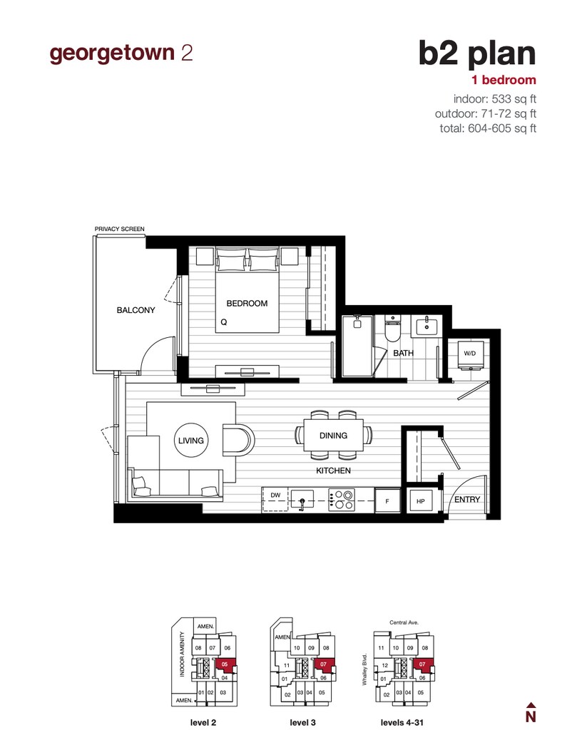 1 Bed + 1 Bath | Brand New | Unit 1507 – Georgetown 2 Welcome to this brand new 1 bedroom, 1 bathroom home in Georgetown 2, located in the heart of Surrey City Centre. Situated on the 23rd floor, this modern unit offers a smart, efficient layout with contemporary finishes and stunning city and mountain views. The home features a sleek designer kitchen with integrated premium appliances, quartz countertops, full-height tile backsplash, and matte black fixtures. The spa-inspired bathroom includes a deep soaker tub and elegant finishes, while thoughtful details such as soft-close cabinetry and under-cabinet lighting elevate everyday living. Residents enjoy access to nearly 18,000 sq. ft. of curated indoor and outdoor amenities, including a fully equipped fitness centre and yoga studio, co-working spaces with meeting rooms, entertainment lounge with kitchen and dining area, and a media/games room. Outdoor amenities include a landscaped terrace with BBQ areas, social seating, and green space. The building offers a secure and convenient lifestyle with concierge service, key fob access, parcel storage, and underground parking. Located steps from Surrey Central SkyTrain, SFU Surrey campus, shopping, restaurants, and parks, Georgetown is part of a vibrant master-planned community designed for modern urban living. Key Features: 1 Bed / 1 Bath Brand new unit (never lived in) High floor (15th floor) with views Modern kitchen with integrated appliances In-suite laundry Access to premium building amenities Prime Surrey Central location near transit, shops, and universities advertised by 88west realty