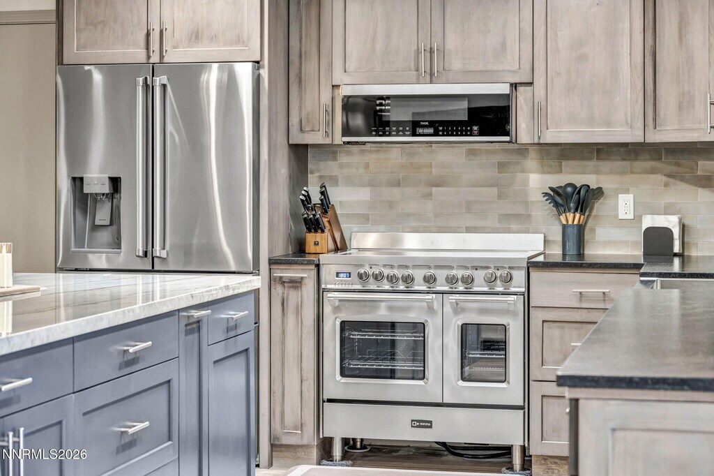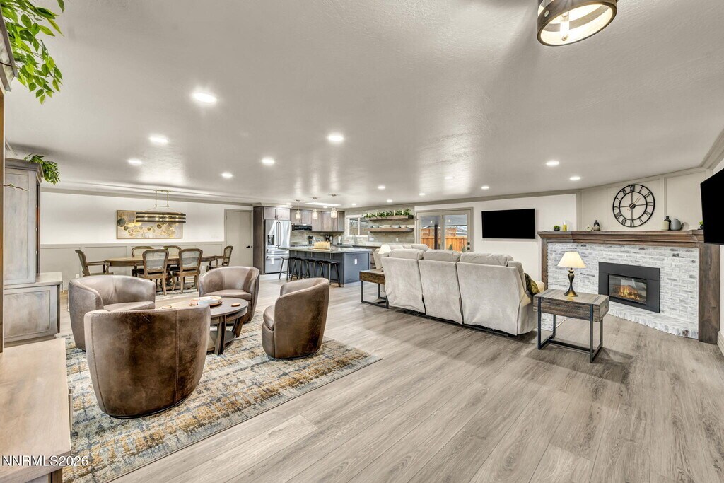Wow—what a setting. This single-level,FULLY FURNISHED home is built for entertaining,with incredible,sweeping views of Mount Rose and the mountains as your daily backdrop. The great room flows effortlessly to the outdoor living space—set out the chairs,fire up the BBQ,catch the game on the outdoor TV,or unwind in the hot tub and soak it all in. Inside,high-end finishes shine throughout. A massive island anchors the chef's kitchen,complete with premium appliances and upscale details at every turn. Dual TVs in the great room let you watch two games at once,and the gas fireplace adds the perfect cozy touch. The former greenhouse atrium now serves as a stunning office filled with natural light,creating a work-from-home space that truly feels like an oasis—with its own TV to keep you connected. Circular driveway with ample parking,and all yard maintenance is included for easy,low-stress living. Prime South Reno location just minutes to Veterans Parkway for quick access to Reno,Sparks,Lake Tahoe,and Carson City. Luxury finishes,incredible views,unbeatable lifestyle. Must see to appreciate! MLS# 260001926