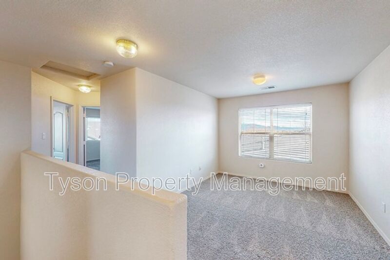 This wonderful home is located in the Cabezon community in Southeastern Rio Rancho off Southern and Unser. As you enter into this home there is a formal living room area with upgraded flooring. Through the living room you have access to the kitchen and secondary living room areas. The kitchen of this home features an island for additional counter space and includes all major appliances such as a refrigerator, a dishwasher, a microwave, and an oven. The secondary living area features a fireplace and quick backyard access. There is onsite laundry available with washer and dryer units included. A guest bath completes the lower level. The primary bedroom is located on the upper level with access to a private patio. The primary bathroom features dual sinks, a standalone shower, a garden tub, and a large closet space. The upper level also offers an open loft, two guest bedrooms, and guest bath. The spacious back yard is low maintenance and offers a covered patio. There is a two-car garage in this home. For a virtual tour, follow this link! : * All Tyson PM tenants are enrolled in the Resident Benefits Package (RBP) for $51.95/month which includes liability insurance, credit building to help boost the resident’s credit scor e with timely rent payments, up to $1M Identity Theft Protection, HVAC air filter delivery (for applicable properties), move-in concierge service making utility connection and home service setup a breeze during your move-in, our best-in-class resident rewards program, and much more! More details upon application. * *When viewing the property, please do not leave the keys outside of the lockbox.* * No Smoking Permitted in or on the Premises.* **Prior to submitting an application, please carefully review our Application Qualification Criteria & Disclosures: .** **Ensure all required documents are uploaded to your application. profile must be completed prior to lease signing: . Applications are processed in the order in which they are received.** *None of our homes are advertised through us on Craigslist. If you see this property on Craigslist please be aware it is a scam.* Amenities: 2 car garage, pet policy: no pets allowed