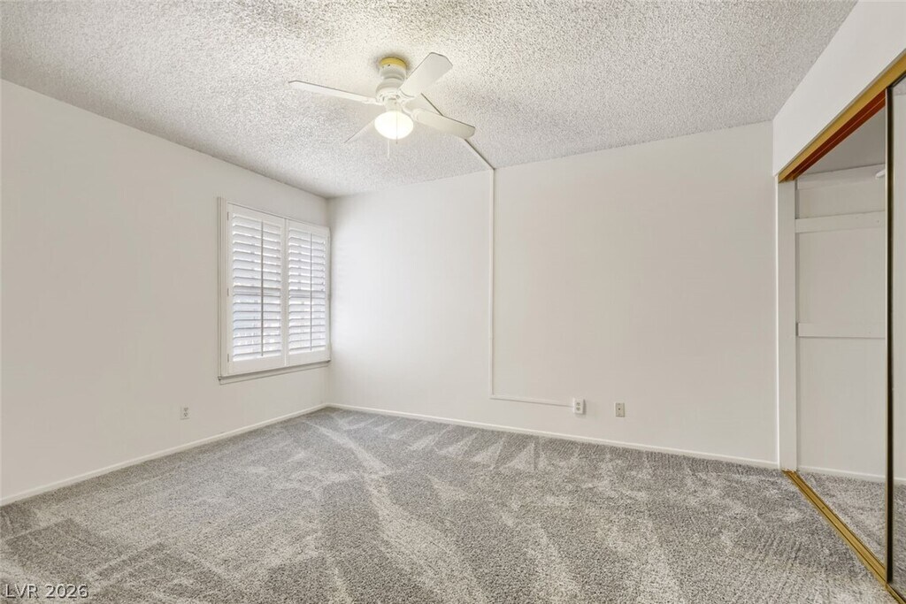 Charming 2-bedroom, 1-bath condo in Las Vegas, conveniently within walking distance of UNLV. This unit features tile flooring, plush carpeting upstairs, and custom cabinetry with roll-out drawers and shelves. The kitchen includes all appliances and granite countertops, plus a full-size washer and dryer for added convenience. Bedrooms have ceiling fans, and the primary bedroom offers a mirrored wardrobe closet. Community amenities include a pool, clubhouse, tennis court and an assigned covered carport. Trash, Sewer and Tenant Portal Fee are included in rent!