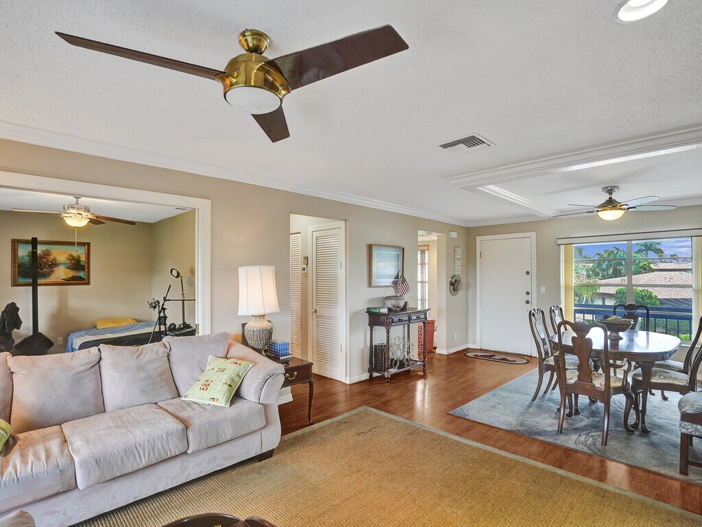 55+ Seasonal or Annual Rental. Minimum 6 mths. 2nd Floor Corner 2/2 with Wonderful Garden View (no back neighbors)! Newer AC 2022, HWH July 2024, Refrigerator 2024, Microwave 2025, W/D less than 2 yrs., Eat-in Breakfast Area. Open Great Room and Dining Room. Large Screen Covered Patio! Accordion Shutters. Step in Shower in Main Bedroom which includes a Walk-in Closet. Rent includes Cable, HBO & DVR, Internet, Water and all the amenities you can imagine! full-size stackable washer and dryer. Please note: this is a 55+ community with a No Pet or Commercial Vehicles permitted, per association rules. No income or credit minimums. Close to the infamous Atlantic Ave. Downtown Delray, Turnpike, I-95, shopping, restaurants, airports, and BEACHES!! Association replaced Roof on building 20