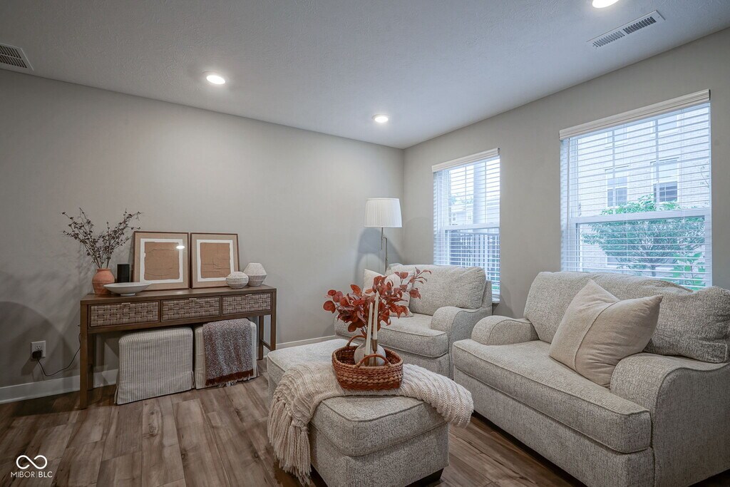 Stunning 3 bed,2 full bath,2 half bath townhome located in Carmel on the Monon Trail! Flexible room off garage,large enough to hold an exercise room,office,or another living area. Open staircase w/ iron spindles leads up to second level w/ another versatile flex room that could be used for office,dining room,or living area. Kitchen offers quartz countertops,large center island,gas cooktop,SS appliances,and walk-in pantry. Slider door off family room w/ automatic blind remote control leads to deck. Upstairs includes 3 beds and 2 full baths. Master bath offers large tile shower w/ seat and transom window. Luxury vinyl plank flooring on first 2 levels. Carpet on third level. PRIME location just a few minutes from Clay Terrace,downtown Carmel/Arts & District. Close to tons of restaurants and shopping! Water Softener less than 1 year. Based on information submitted to the MLS GRID as of [see last changed date above]. All data is obtained from various sources and may not have been verified by broker or MLS GRID. Supplied Open House Information is subject to change without notice. All information should be independently reviewed and verified for accuracy. Properties may or may not be listed by the office/agent presenting the information. Some IDX listings have been excluded from this website. Prices displayed on all Sold listings are the Last Known Listing Price and may not be the actual selling price.