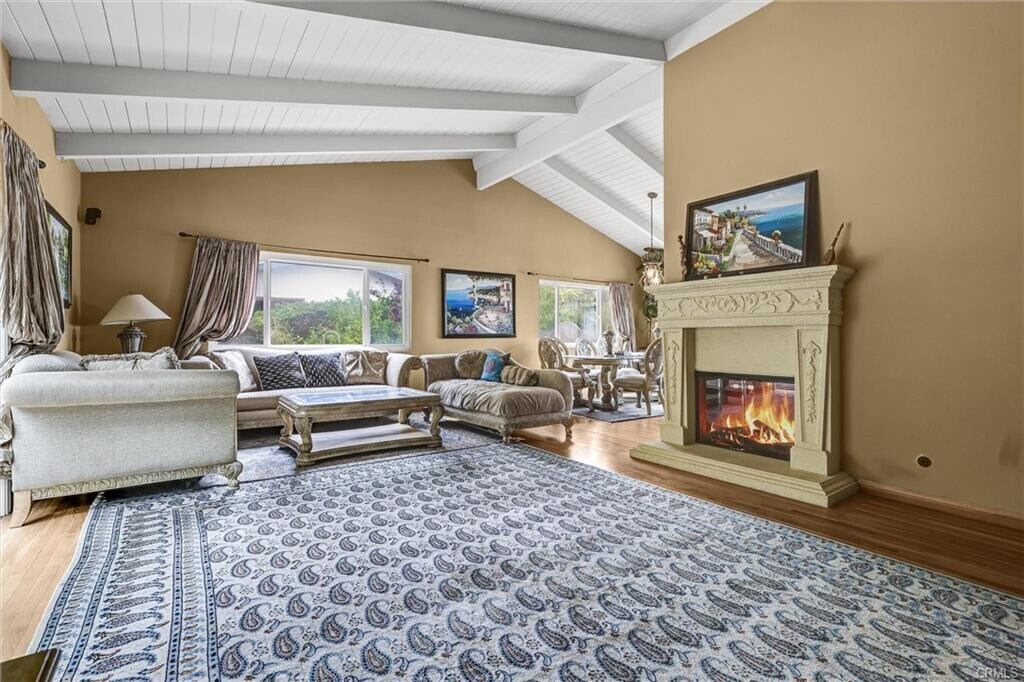 - *PRICE REDUCED* Set above the Village in Temple Hills, this ocean-view residence blends dramatic indoor/outdoor living with the ease of single-level spaces. A vaulted, open-beam great room anchored by a carved fireplace opens to a front deck boasting stunning ocean and hill views. The elegant kitchen adjoins the dining area and living room for effortless entertaining. Three bedrooms and two baths include a view primary suite with sitting area/retreat and a primary bathroom with featuring dual vanities, walk-in shower and soaking tub overlooking the hills. Outdoors, a private paver courtyard hosts a built-in BBQ and island with sink; brick pathways climb the terraced .24-acre lot to a hilltop gazebo—multiple places to dine, lounge and take in the scenery. Additional highlights: owned solar, wood floors, washer/dryer and refrigerator included, attached 2-car garage with EV outlet, outdoor storage shed, and no HOA. Enjoy quick access to Laguna’s beaches, galleries, dining and hiking. Listing provided by: Steven Bullock of Bullock Russell RE Services LA State License 1486410 Listing posted by Orange County [SYNDID 4131351 11142025]
