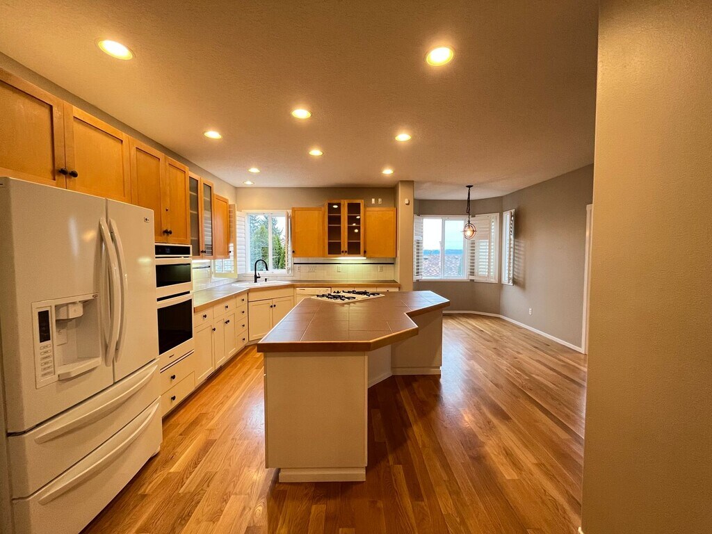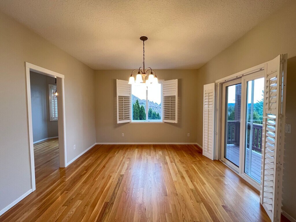 Welcome to your dream home nestled in the hills of the desirable Bull Mountain Neighborhood in Tigard. This beautiful 4 Bed, 3.5 Bath house is designed with comfort, lighting and functionality in mind. This home features an entertainment space, game room, office/flex space, with high ceilings and ample opportunities for storage throughout the home. Walk in to the front door of your new home to the exquisite split-level style entry. The star case on your left will take you to your large entertainment area, garage, and bonus space. Follow the stairs to your right, which will lead you to your main living floor. You will be be greeted by beautiful hardwood flooring and natural lighting throughout the main level. Your main level invites you to a spacious open den living room with an office room equipped with French doors located to your left. Through your living area is your huge gourmet kitchen and nook equipped with all white appliances. The appliance package includes: a refrigerator, wall oven, dishwasher and gas cooktop located on your large kitchen island. Through your kitchen, is the main living area featuring plush carpeting and a gas fireplace providing warmth on those cold winter days. A guest bathroom is located between the kitchen and main living area. Venturing upstairs, you will find your 4 bedrooms. The primary bedroom offers ample natural lighting from the private balcony with a beautiful view of the valley and mountains bellow. Enjoy the luxury of your huge walk-in closet featuring numerous built-in shelves and a private ensuite bathroom equipped with 2 large single sink vanities, a walk-in shower and soaking tub. Your additional bedrooms are equally inviting, spacious in size and offer classic wall closets for storage. Heading back down to the lowest level of your home, you’ll be met with a full-service bar or game room, perfect for hosting friends and family gatherings. You’ll also find your washer and dryer leading you to a full bathroom and carpeted additional media, office, den, or game room. Enjoy access to your huge garage, which boasts floor to ceiling cabinets for additional storage and organization. Heading outside, your large patio deck is surrounded with a beautifully landscaped yard and is perfect for relaxing on warmer days and taking in the sun. Follow the walkway up your backyard to a charming bench overlooking the neighborhood and beautiful surrounding greenery, providing a perfect spot for relaxation or enjoying a lovely novel. Enjoy living near amenities such as Safeway, Crumbl Cookies, New Seasons market, AMC theaters and more! Take a lovely walk through Summerlake City Park and Barrows Park. Mountainside High School and Scholls Heights Elementary are nearby! Call or Text Our Leasing Agent to schedule a showing! English Speaking Spanish Speaking Visit our website to apply and view other homes we have available! Do you need property management services? Maximize your income and cut your costs!