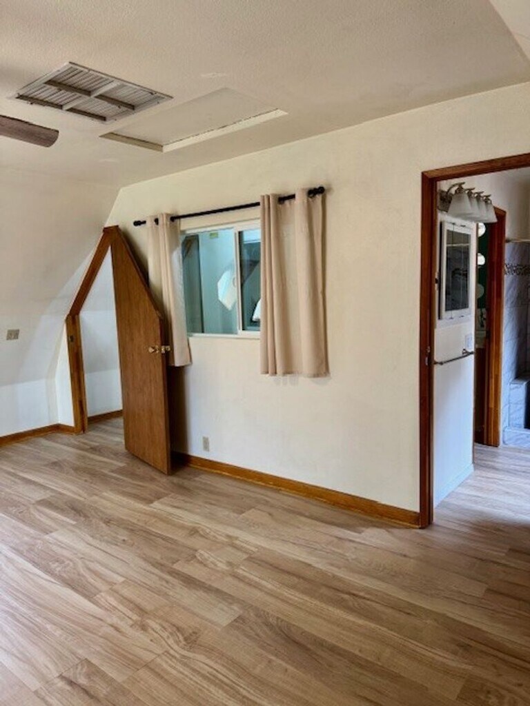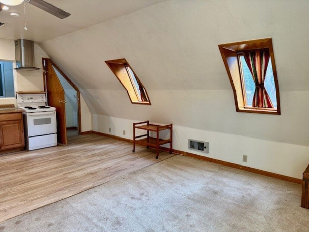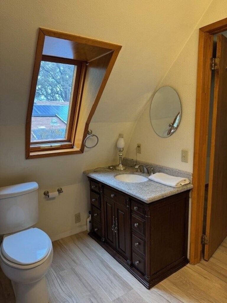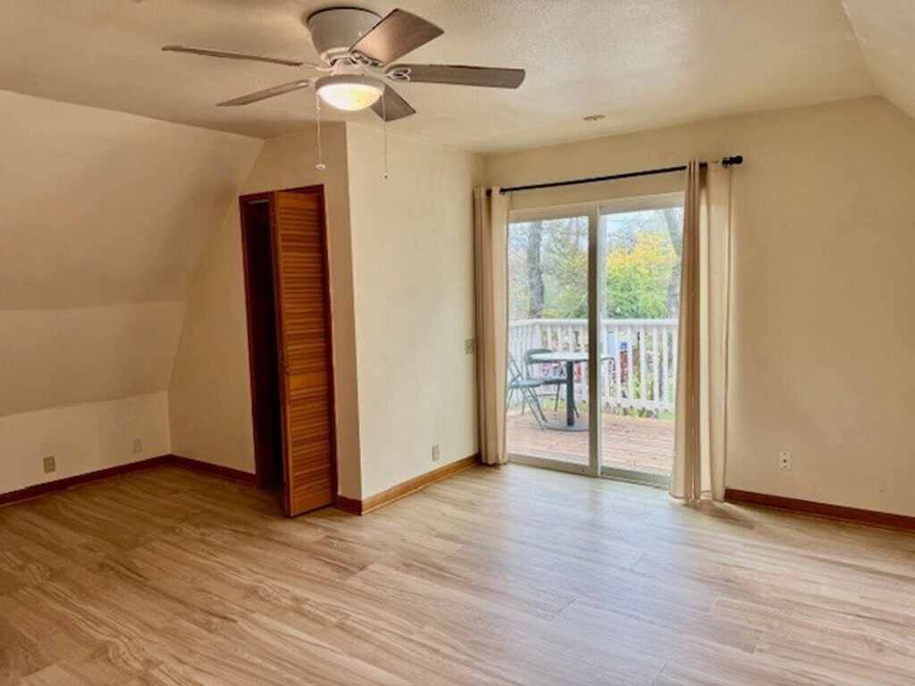 This light and airy one bedroom apartment sits above the owner's two car garage, detached from their main house with private entrance on lovely acreage in upper Rough and Ready (near Bitney Springs). It is a quiet setting where you’ll enjoy peace and tranquility, as well as fall colored foliage and fragrant spring flowers, no road noise, and just ten minutes from Grass Valley. There are two sliding glass doors, one from the bedroom and the other from the living room, that expand the living area by opening onto decks where you can sit and enjoy the lovely surroundings, expansive views and star gaze in the evening. Fenced garden space with individual beds are available for planting and the outdoor pool can be enjoyed by scheduling in advanced with owners. There is a wall AC that keeps the apartment comfortably cool in the summer. The washer and dryer are located in the garage and are shared with the person who rents the small studio apartment below. The lower unit is occupied by a very quiet, long term tenant. All utilities are included except Xfinity high speed internet which is $25/month. No pets. No smoking. Appointment is required to view.