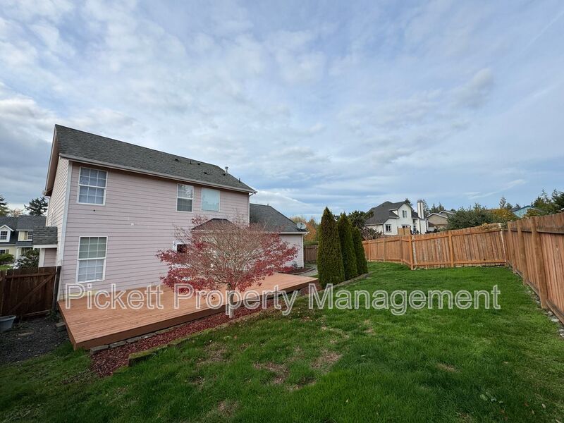 This 3-bedroom, 2.5-bath home offers a perfect blend of comfort and functionality. Step into an inviting open-concept main floor featuring a cozy gas fireplace in the living room, a formal dining area, and a bright eat-in kitchen ideal for entertaining. Bonus room on the main floor offers versatility. Upstairs, you'll find all three bedrooms, including a light-filled master suite complete with a luxurious 5-piece bath, soaking tub, and walk-in closet. Provided washer and dryer make laundry day a breeze. Fully fenced back yard with large deck perfect for relaxing. Small to medium dogs are possible with approved third-party pet screening, additional $500 deposit per pet, and $35 a month pet rent, per pet. All Pickett Property Management residents are enrolled in the Resident Benefits Package (RBP)! For just $35 per month, residents can enjoy exclusive benefits including credit building to boost their credit score with timely rent payments, up to $1M in Identity Theft Protection, our top-notch resident rewards program, and much more! Residents can enhance their RBP by adding rental insurance that meets the Pickett requirements plus more for a flat $11.95 per month, and on-demand pest control for an additional $17/month. Pickett Property Management does not accept comprehensive reusable reports. Amenities: dishwasher, gas forced air heat, gas log fireplace, 2 car garage, microwave, refrigerator, gas stove, washer and dryer, fenced backyard, dogs possible, garbage disposal