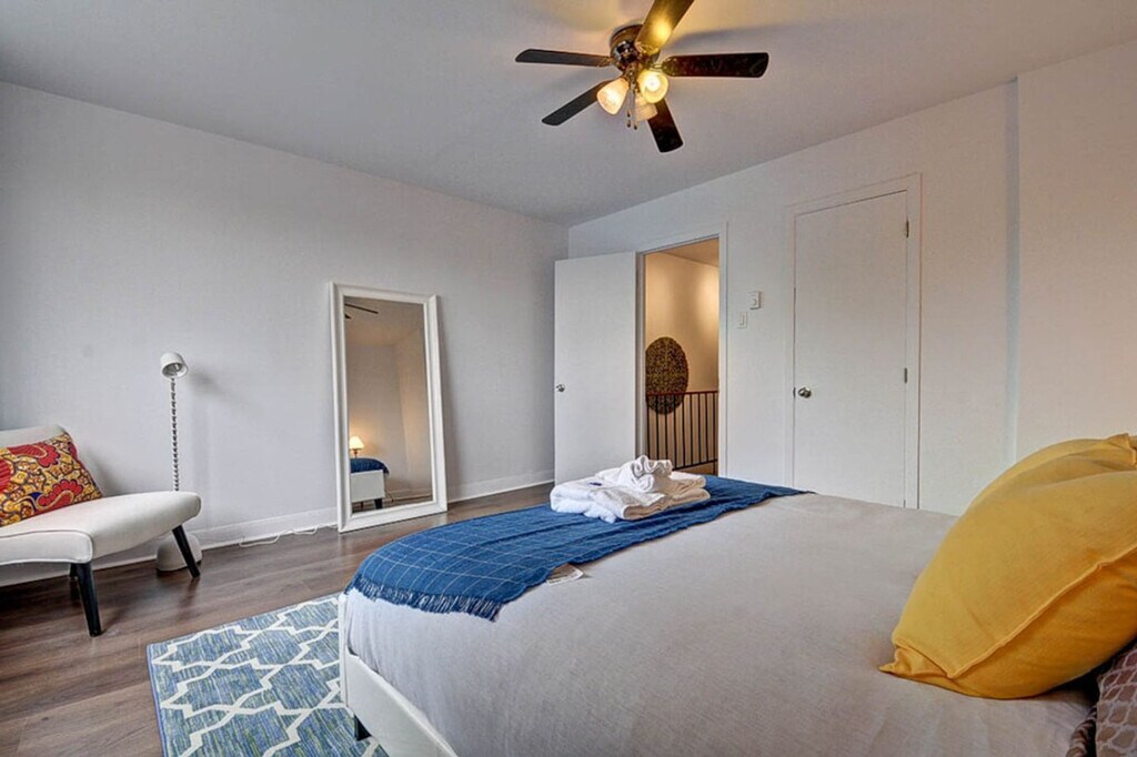 Feel at home in this bright and charming 2-story apartment, ideally located just a 5-minute walk from Lafontaine Park and a 10-minute walk from Beaudry metro. This beautifully renovated apartment features air conditioning, hardwood floors, and a fully equipped kitchen with stainless steel appliances. Enjoy the convenience of easy self-check-in and access to a beautiful shared terrace, perfect for soaking up the sun. The generous space and brightness of this apartment make it a delightful place to stay. The two floors allow for privacy, with a beautiful living space on the first floor and a modern dining table that comfortably accommodates four people. The fully equipped kitchen includes a dishwasher, making cleanup a breeze after enjoying a meal. Relax in the living room with a full HD 4k TV, perfect for movie nights, and enjoy the comfort of hotel-quality linens and towels. Dogs are welcome with a maximum of one dog per stay, subject to conditions and an additional fee of $100. The dog must be over one year old, weigh less than 40 lbs, and be kept clean and on a leash in common areas. Parking is available on the street for a fee, with some free spaces in adjacent streets. Located on Ontario Street, this apartment is surrounded by local shops, bakeries, butcheries, and cheese shops. Explore nearby attractions like Lafontaine Park, a popular gathering spot for relaxation and recreation, or visit well-known restaurants such as Poutineville and Grenade. With easy access to public transportation, including Beaudry and Sherbrooke metro stations, and Bixi bike stands, getting around the city is simple and convenient. The apartment is on two floors and is not suitable for people with reduced mobility. Smoking is strictly prohibited, with a $500 penalty for violations. Parties or excessive noise are not allowed, with a $500 penalty and immediate expulsion for violations. Check-in is after 4:00 p.m. and check-out is by 11:00 a.m. Late check-out may incur additional charges. A maintenance worker may occasionally visit for upkeep, ensuring minimal disturbance. [SI]