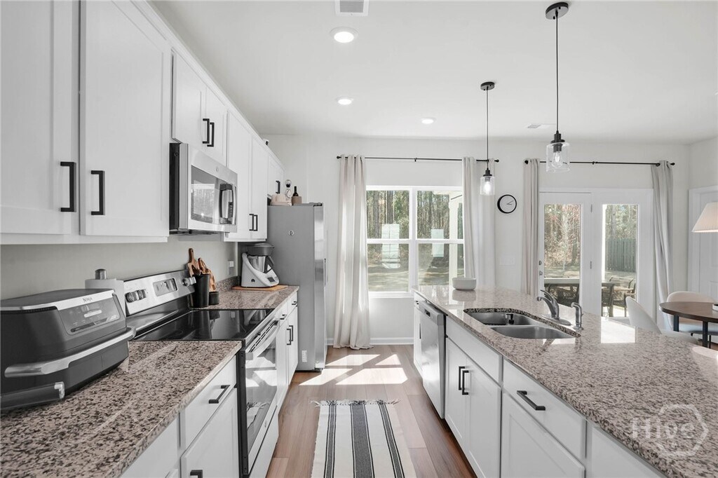 Ashley JohnsonDiscover this beautifully maintained 5-bedroom, 2.5-bath home in the heart of Richmond Hill. Step inside to luxury vinyl plank flooring that flows into an open-concept kitchen and family room with an eat-in dining area. A versatile bonus room on the main floor is perfect for a home office or playroom. Upstairs, a spacious loft accompanies four bedrooms two with walk-in closets and a convenient laundry room. The primary suite features a vaulted ceiling, walk-in closet, dual vanities, and a large walk-in shower. Enjoy relaxing on the charming covered front porch. Located near schools, shopping, and dining. Schedule your tour today this one won't last! **The washer and dryer can stay for an extra $100.**