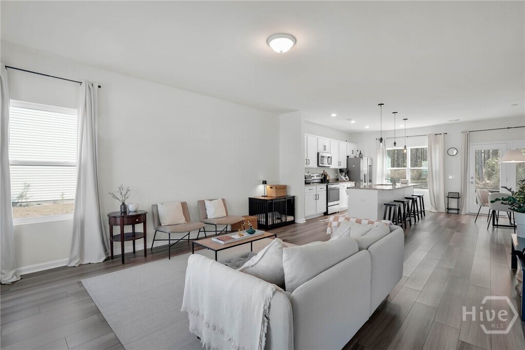 Discover this beautifully maintained 5-bedroom,2.5-bath home in the heart of Richmond Hill. Step inside to luxury vinyl plank flooring that flows into an open-concept kitchen and family room with an eat-in dining area. A versatile bonus room on the main floor is perfect for a home office or playroom. Upstairs,a spacious loft accompanies four bedrooms—two with walk-in closets—and a convenient laundry room. The primary suite features a vaulted ceiling,walk-in closet,dual vanities,and a large walk-in shower. Enjoy relaxing on the charming covered front porch. Located near schools,shopping,and dining. Schedule your tour today—this one won't last! **The washer and dryer can stay for an extra $100.**