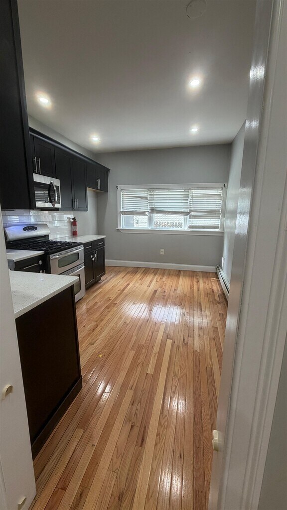 LOOKING TO SAVE? ASK ABOUT OUR LANDLORD SPECIAL! Gut-renovated just a few years ago, this beautifully updated 2-bedroom apartment is in a well-maintained two-family home. It features hardwood floors, baseboard heating, and a modern eat-in kitchen with stainless steel appliances, a dishwasher, and sleek white quartz countertops. Both bedrooms offer ample closet space, and the layout provides comfortable, functional living. Laundry is available in the building with a washer and dryer. Conveniently located just 2 blocks from St. Peter’s University and a few blocks from Lincoln Park, with an easy NYC commute — less than a 15-minute walk to the JSQ PATH station. Small pets are welcome. Tenant may purchase a refrigerator, and the landlord will reimburse the cost.