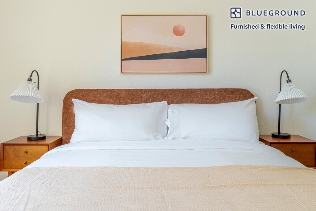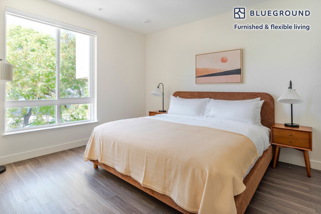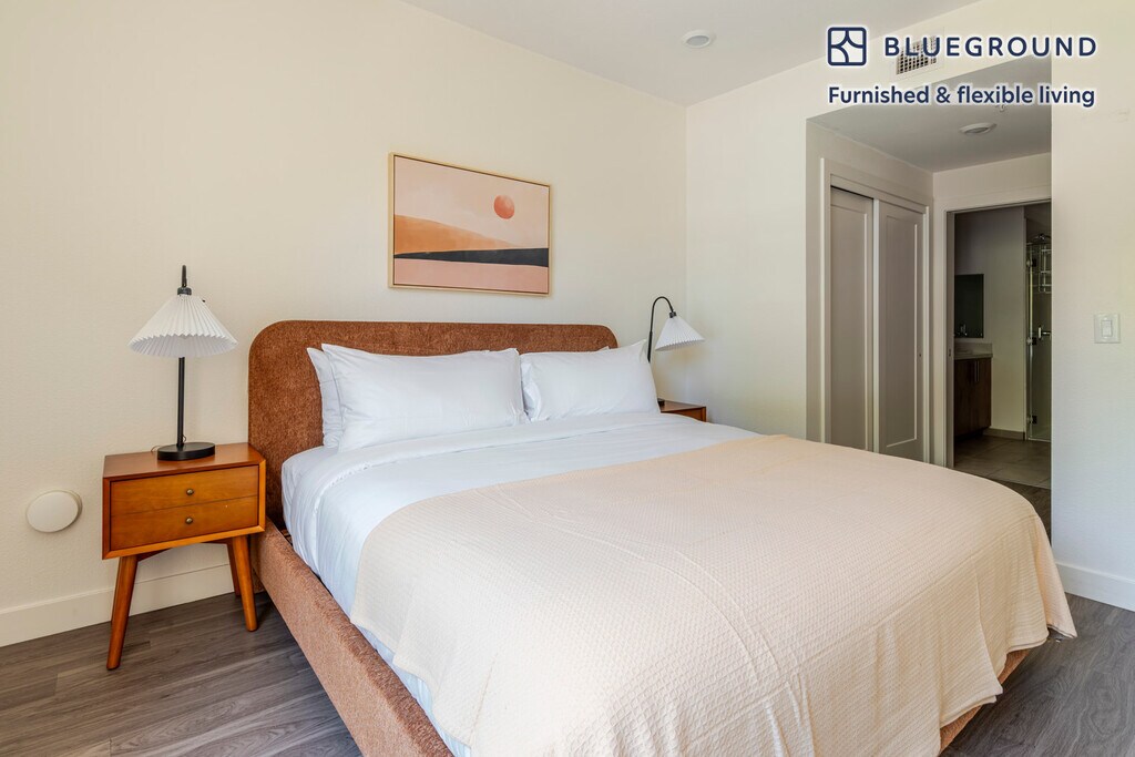 Show up and start living from day one in San Jose with this sophisticated two bedroom Blueground apartment. You’ll love coming home to this thoughtfully furnished, beautifully designed, and fully equipped Market - Almaden home. (ID #SFO1922) The advertised rate of $2,220/month is the lowest available price, based on a 2 month(s) and 29 day(s) stay with a move-in date of November 8, 2025. If you’re looking for a 1-year stay, the rate is $3,660/month. Rates vary depending on the duration of stay, season, and other parameters. For exact pricing and additional pricing components, please visit our website and enter your desired move-in and move-out dates. The rate is applicable when billed upfront; it can be higher if billed in multiple payments. Brokers are welcome to reach out. Were you looking for an unfurnished lease? Try Blueground instead and upgrade from unfurnished to furnished living: - Furnished at rates comparable to unfurnished - No setup or furniture costs - save thousands - Move-in ready - save time, just bring your suitcase Designed with you in mind As with any Blueground apartment, you’ll find a thoughtfully designed space complete with beautiful furniture and a fully equipped kitchen in this two bedroom property. And, thanks to our superior quality mattresses, luxury linens, and towels, you can relax knowing you’ll always feel comfortably at home. When you’re ready for some fun, you can take in the San Jose vibes or bring the entertainment to you with the premium wireless speaker or smart TV. This apartment also offers in-apartment laundry. Sleeping arrangements King Bed, 70.8in/180cm King Bed, 70.8in/180cm Amenities Building amenities unique to this two bedroom apartment include an on-site: - BBQ Area - Dryer - Elevator - Washing machine - Lounge - Parking - Pets allowed - Playroom Arrival and ongoing support The entire apartment is yours to enjoy! Throughout your stay, you’ll have access to our Client Experience team through the Blueground App. You can schedule additional cleanings, submit maintenance requests, and view our neighborhood recommendations with just a few taps. We’ll share all details upon confirmation of your stay. Other things to note Building amenities may have an extra cost. This Blueground apartment has flexible lease options, allowing you to book it for one month, a year, or more. Pets are welcome, though weight limits and breed restrictions apply and may incur fees. Parking is offered based on availability and is subject to a fee. We take great pride in ensuring every photo displayed is shot in our own units with our actual furnishings. That said, we regularly refresh our decor and furniture arrangement, which may differ from what’s pictured. [SI]