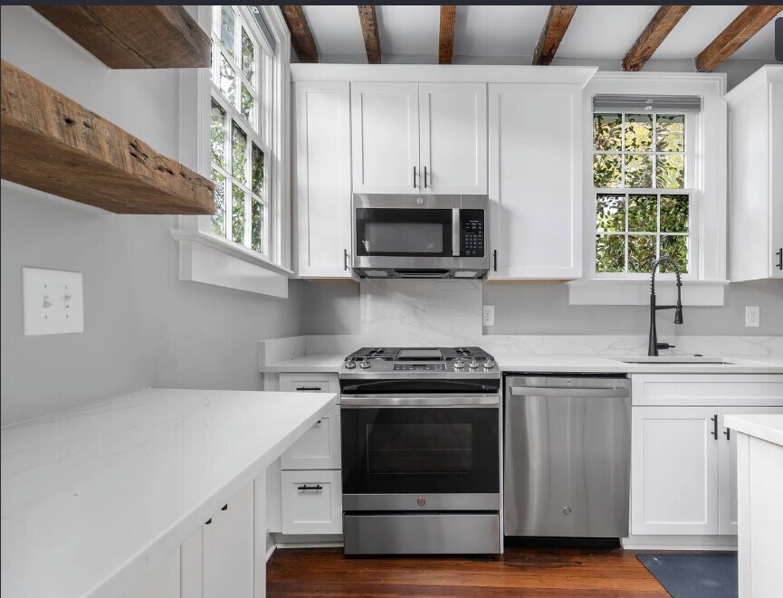 Stunning Charleston Retreat • Steps from King Street, MUSC & CofC Welcome to your Charleston dream home—a beautifully renovated, impeccably furnished 2-bedroom residence located on one of the most desirable corners in Downtown. Surrounded by history, charm, and walkability, this spacious flat offers the perfect blend of modern luxury and classic Southern character.Unbeatable LocationYou’re truly in the heart of it all:2 blocks to Upper King Street – Charleston’s best dining, nightlife, and shoppingShort walk to the College of Charleston 0.5 miles to MUSC – about a 10-14-minute walkWhether you’re here for work, a long-term stay, medical rotation, or an extended Charleston escape, you won’t find a better, more central location.The SpaceThis home has been fully renovated from top to bottom, offering high-end finishes while preserving the architectural charm Charleston is known for.Highlights include:Spacious 2-bedroom layout with great natural lightExposed historic beams and heart pine floorsWell-equipped designer kitchen with everything needed for extended staysClassic Southern porch perfect for morning coffee or evening relaxationNewly renovated bathrooms with clean, modern finishesThoughtfully furnished throughout with comfort and style in mindLarge, beautifully landscaped corner lot—rare for downtown CharlestonOn-site parking (a huge luxury in this neighborhood)This is not your typical rental—every detail has been considered to create a warm, inviting, and elevated experience.Charm + Quality + ComfortYou’ll be staying in a home that is:Historic, yet fully modernizedStylish, yet comfortableCentrally located, yet peacefulIt truly doesn’t get any better in Charleston: location, charm, walkability, and craftsmanship—all in one place.Perfect For:Traveling nurses & MUSC rotationsProfessors, fellows, and executive relocationsExtended stays & remote workersCofC Students looking for an elevated experienceAnyone wanting a premium Charleston home for 30+ days