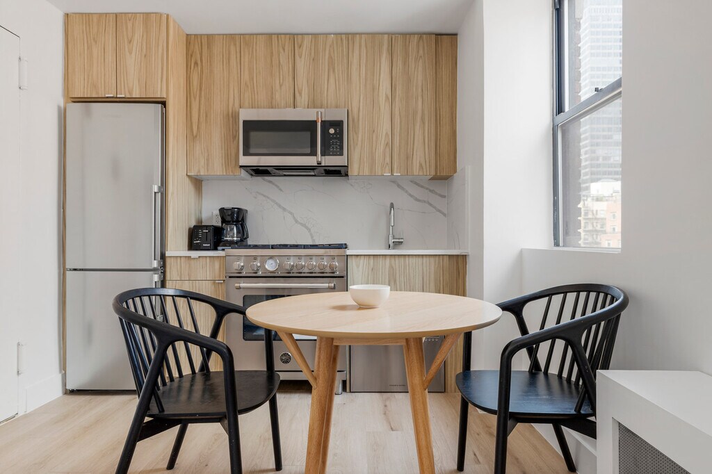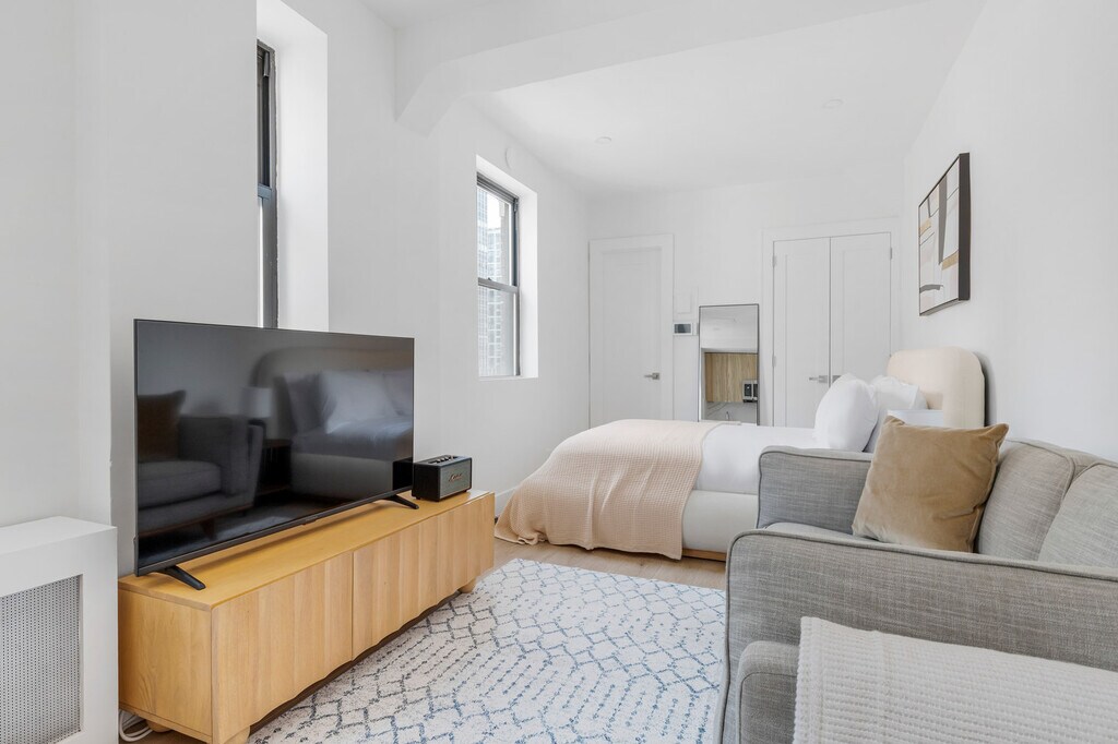 Similar space, but different These photos are of a similar space and style to this apartment. They’re intended to give you a sense of Blueground’s design style. Exact furniture and layout will be different. Be the first to rent! Feel at home wherever you choose to live with Blueground. You’ll love this stylish Murray Hill furnished studio apartment with its modern decor, fully equipped kitchen, and charming living room. Ideally located, you’re close to all the best that New York has to offer! (ID #NYC2112) The advertised rate of $4,150/month is the lowest available price, based on a 11 month(s) and 29 day(s) stay with a move-in date of January 31, 2026. Rates vary depending on the duration of stay, season, and other parameters. For exact pricing and additional pricing components, please visit our website and enter your desired move-in and move-out dates. The rate is applicable when billed upfront; it can be higher if billed in multiple payments. Brokers are welcome to reach out. Were you looking for an unfurnished lease? Try Blueground instead and upgrade from unfurnished to furnished living: - Furnished at rates comparable to unfurnished - No setup or furniture costs - save thousands - Move-in ready - save time, just bring your suitcase Designed with you in mind Thoughtfully designed with bespoke finishes, modern furnishings, and a fully equipped kitchen, you’ll enjoy that “I’m home” feeling with this Blueground apartment. Whether you’re lounging in your cozy living room streaming the latest and greatest entertainment on the smart TV or premium wireless speaker, or getting some well-earned rest on the superior quality mattress with luxury linens, you’ll fall in love with everything this Murray Hill apartment has to offer. This apartment also offers in-apartment laundry. Sleeping arrangements Queen Bed, 63in/160cm Amenities Building amenities unique to this studio apartment include an on-site: - Dryer - Elevator - Washing machine Arrival and ongoing support The entire apartment is yours to enjoy! Throughout your stay, you’ll have access to our Client Experience team through the Blueground App. You can schedule additional cleanings, submit maintenance requests, and view our neighborhood recommendations with just a few taps. We’ll share all details upon confirmation of your stay. Ideally Located This furnished apartment is located in Murray Hill, a lively Midtown neighborhood. The active nightlife scene makes it increasingly ideal for youngsters and recent graduates. Simultaneously, families are relocating here as there are many good schools in close proximity. Murray Hill offers various destinations for culture-lovers. Namely, the New York Public Library and Bryant Park draw residents in from the rest of the city. Grand Central Station is only 5 minutes from Murray Hill by subway. Other things to note Photos are from a similar property. This Blueground apartment has flexible lease options, allowing you to book it for one month, a year, or more. Brokes CYOF. Also note - The apartment's building is undergoing renovations, and you may hear construction noise inside your apartment from time to time