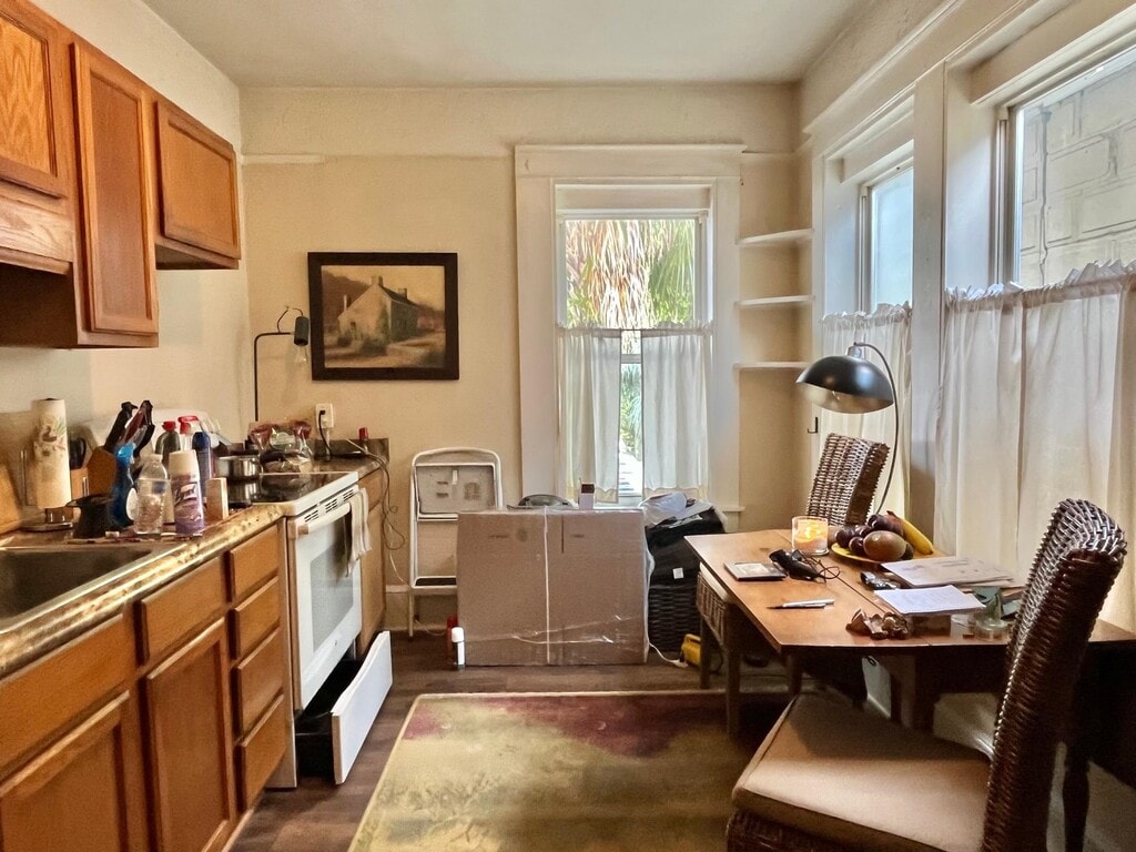 1 bedroom, 1 bath Carriage House Apartment on King Street in downtown St Augustine! This is a second floor unit with full Kitchen, Living Room, Bedroom, Full Bath and front porch. There is also a covered carport parking space included. Walk to everything downtown! Available in early September for move in. Tenant is responsible for all utilities. Required to move in: First months rent $1300 plus $2000 security deposit. Background and credit checks required.